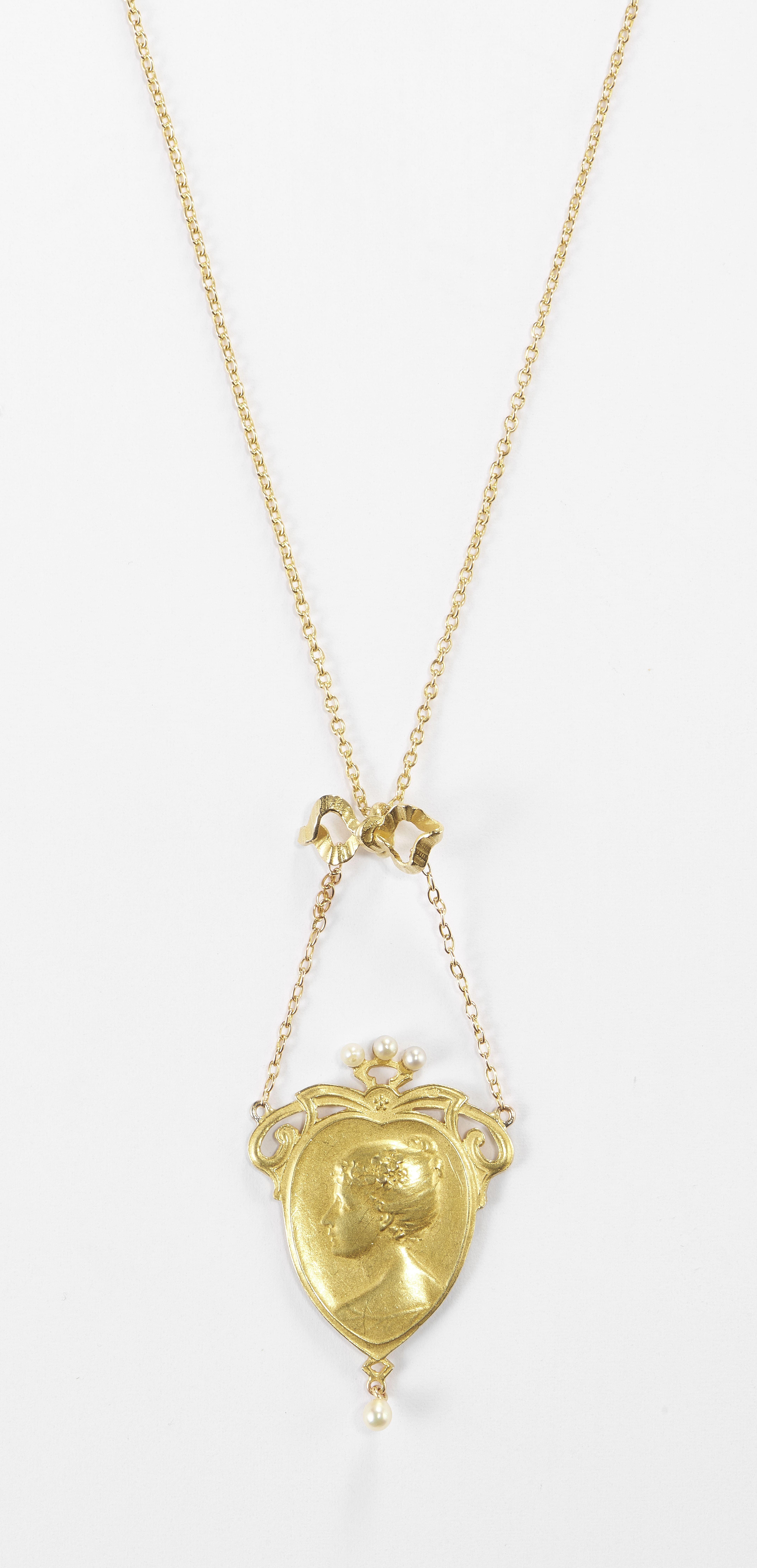 60. Collier de perles en chute terminé par un fermoir Art déco serti...