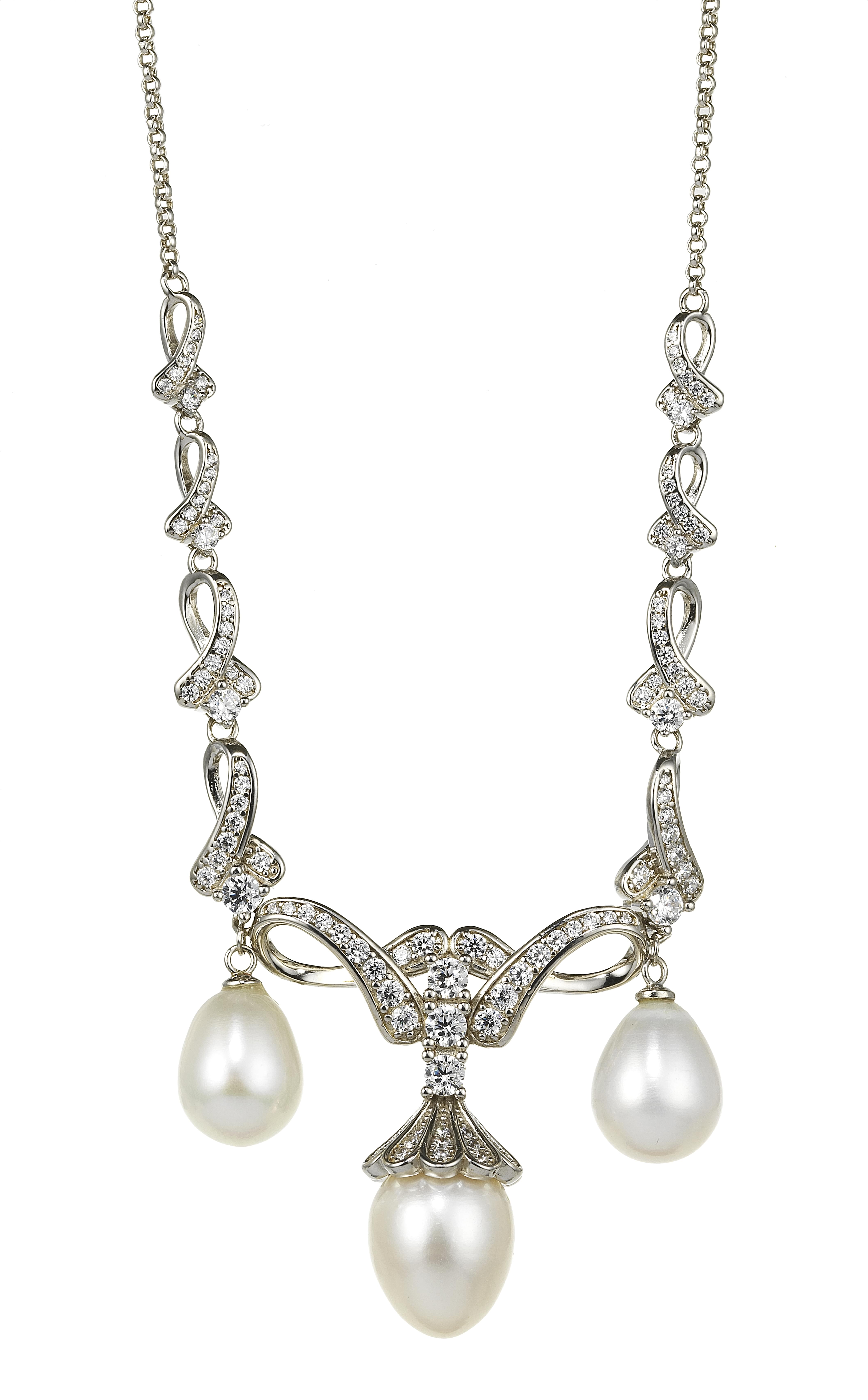 3129. *Collier centré d'un motif de girandole retenant trois perles en goutte