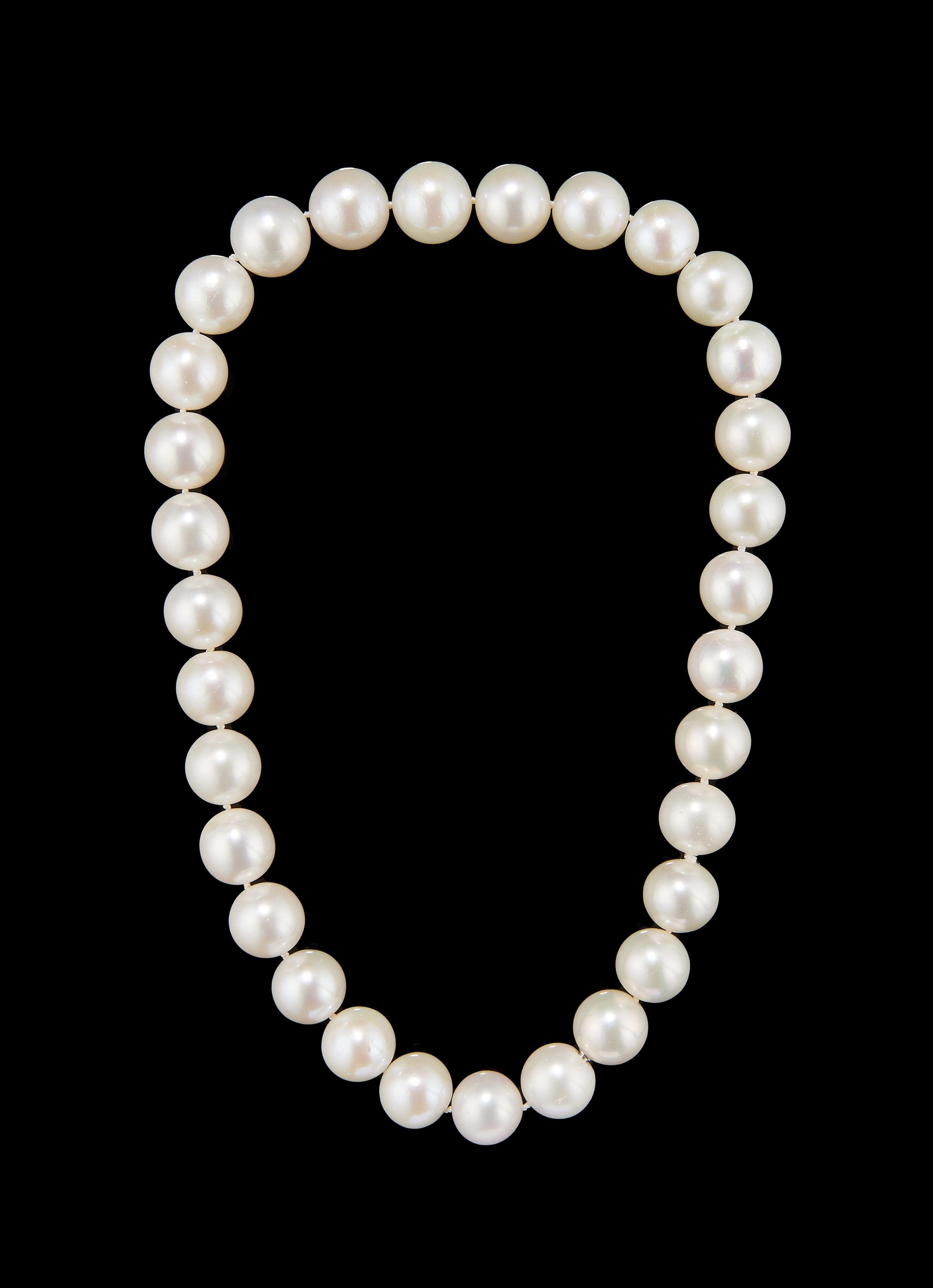 Fermoir en or gris 750 intégré dans une perle, L 44 cm