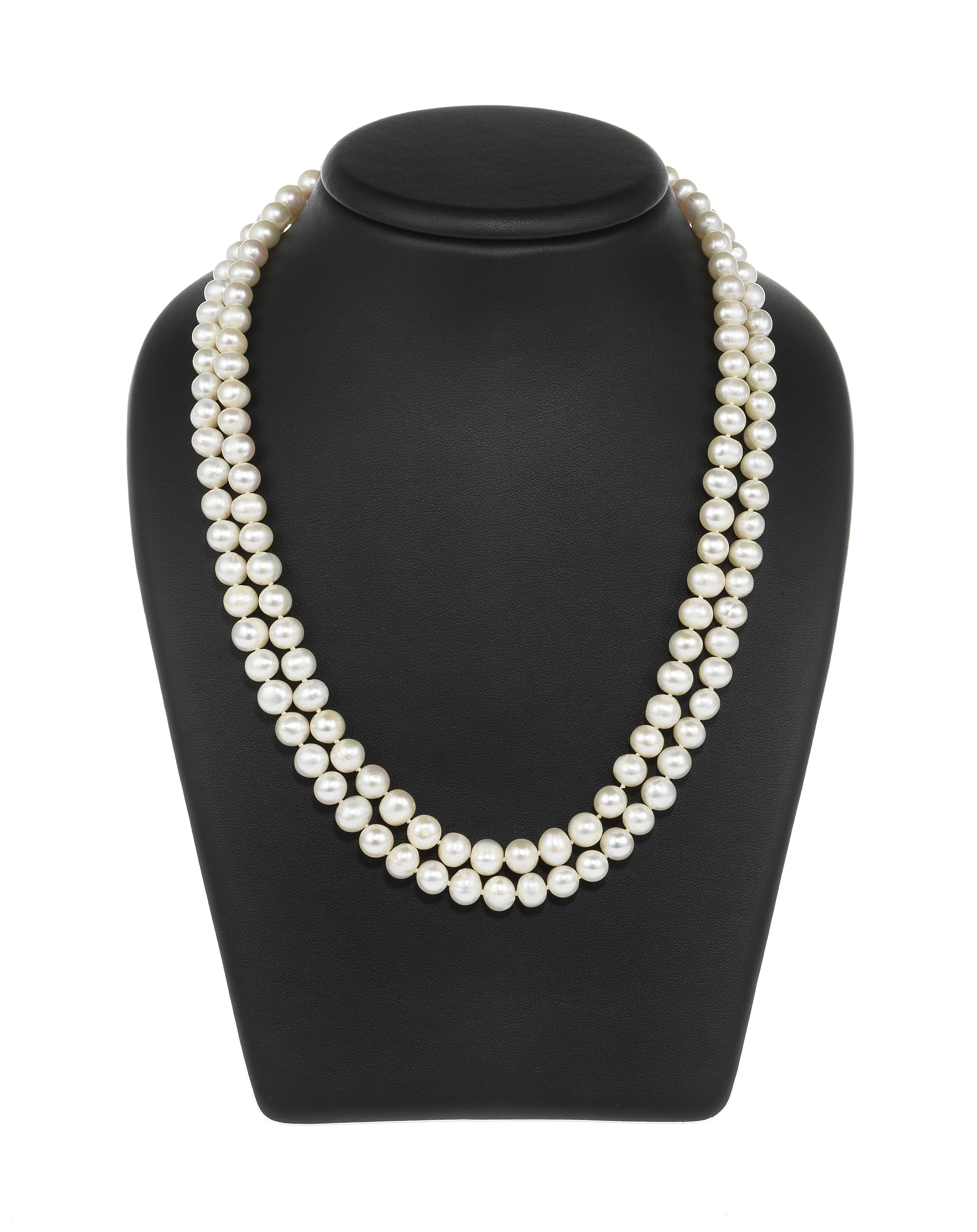 3050. Collier composé de deux rangs de perles d'eau douce blanches (D env. 7,5 mm)