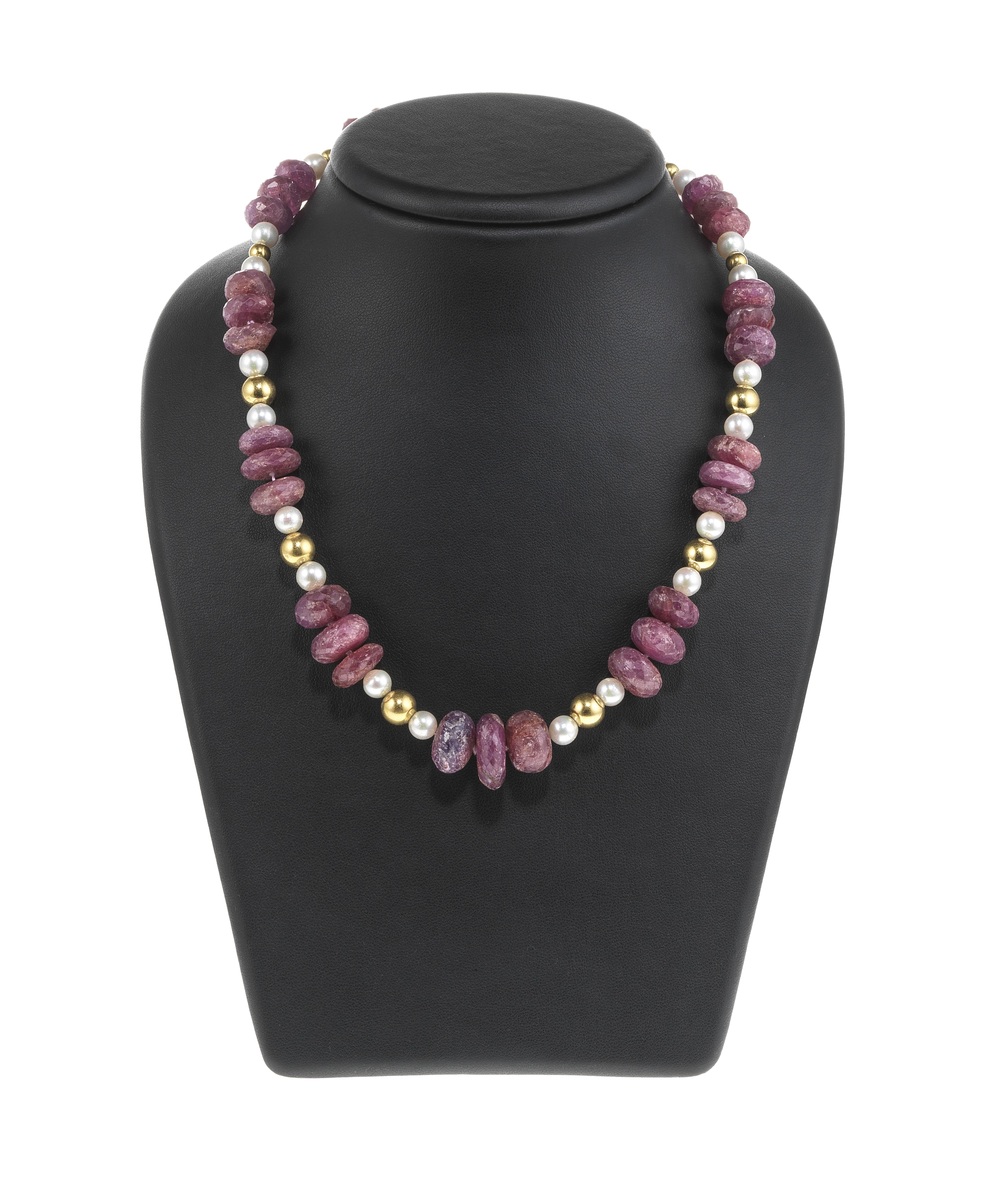3159. *Collier composé de disques de rubis facettés alternés de perles et de perles d'or