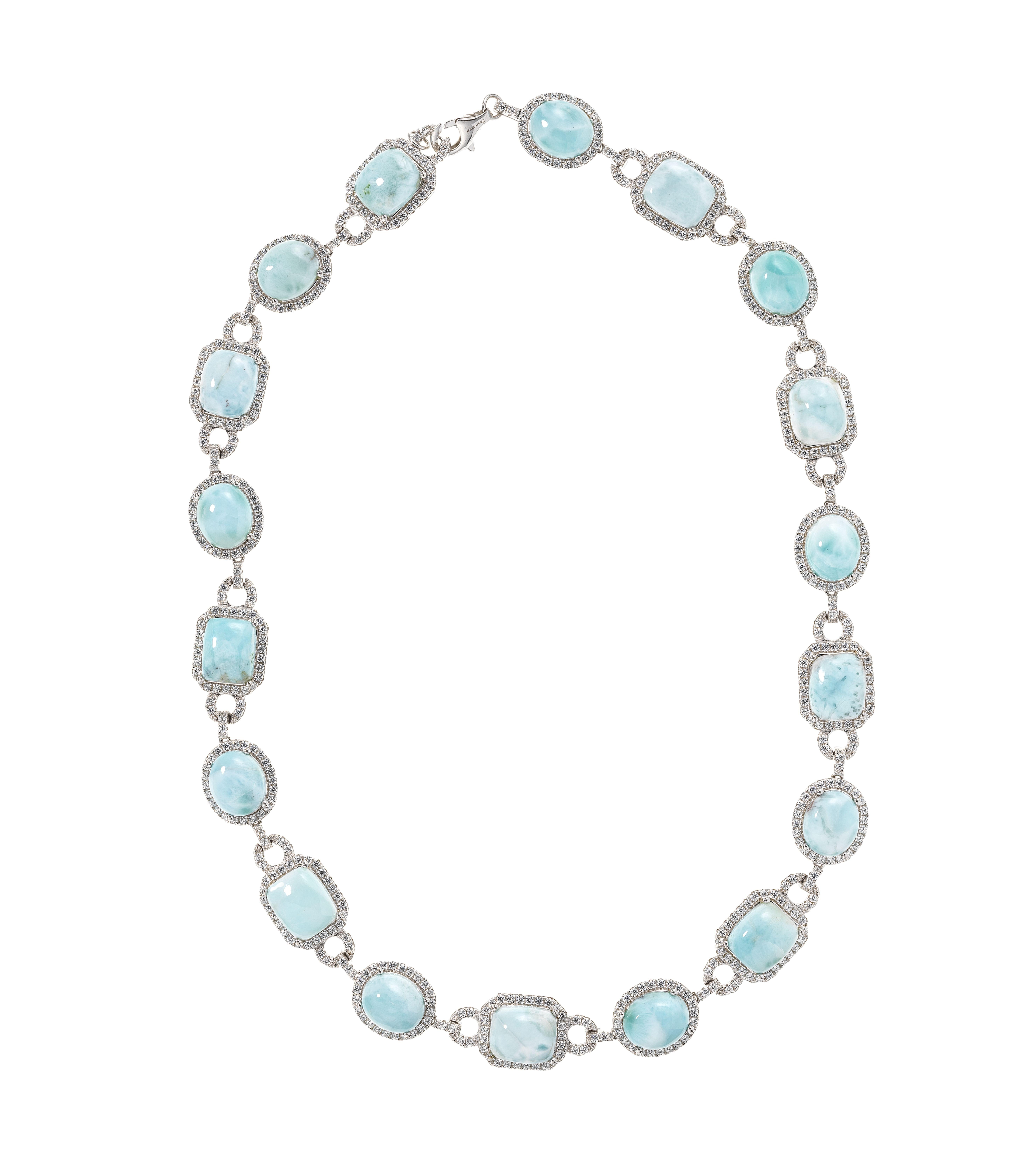 20. Collier à maille plate terminé par un motif serti de saphirs