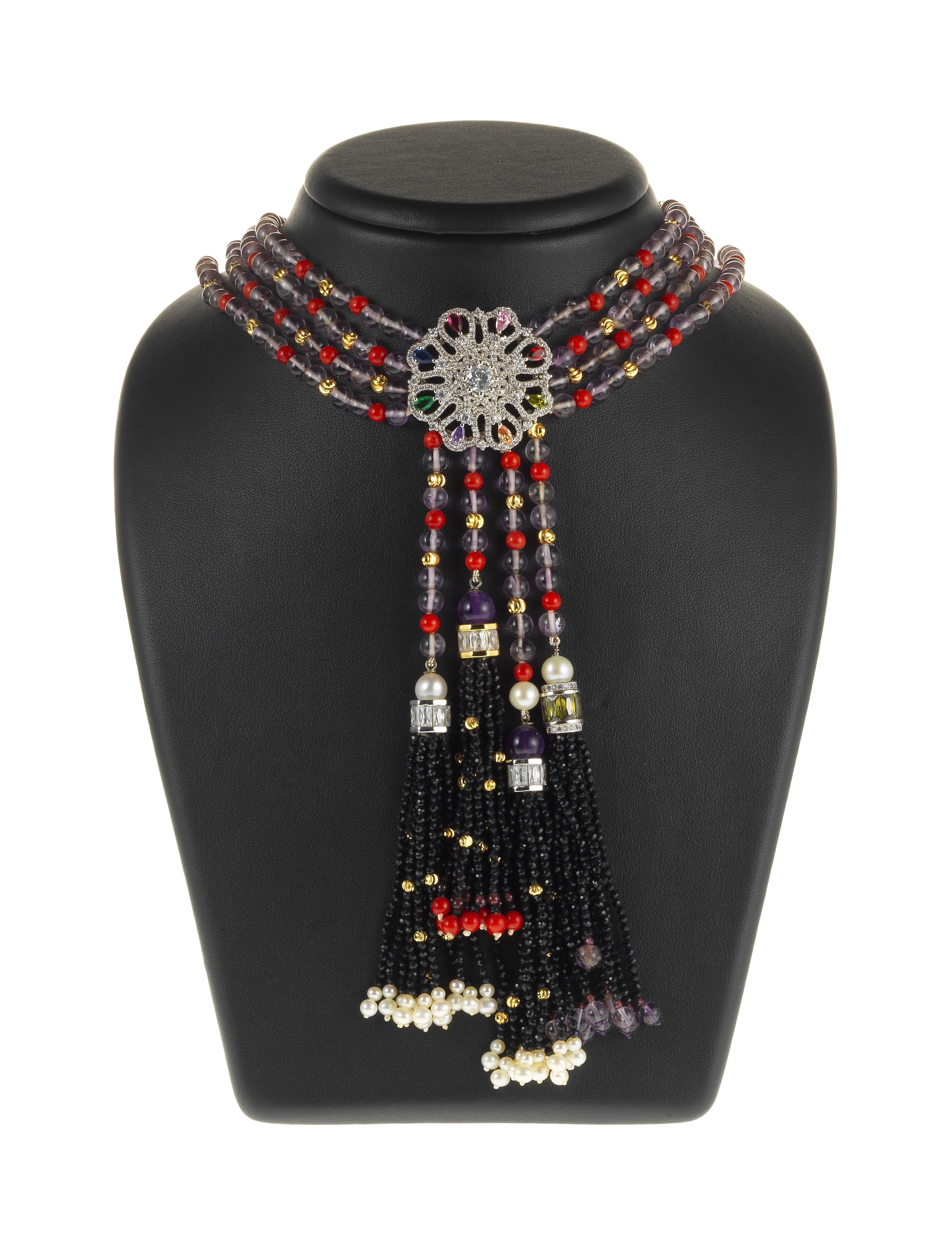 3117. *Collier composé de trois rangs de perles d'améthystes et de corail