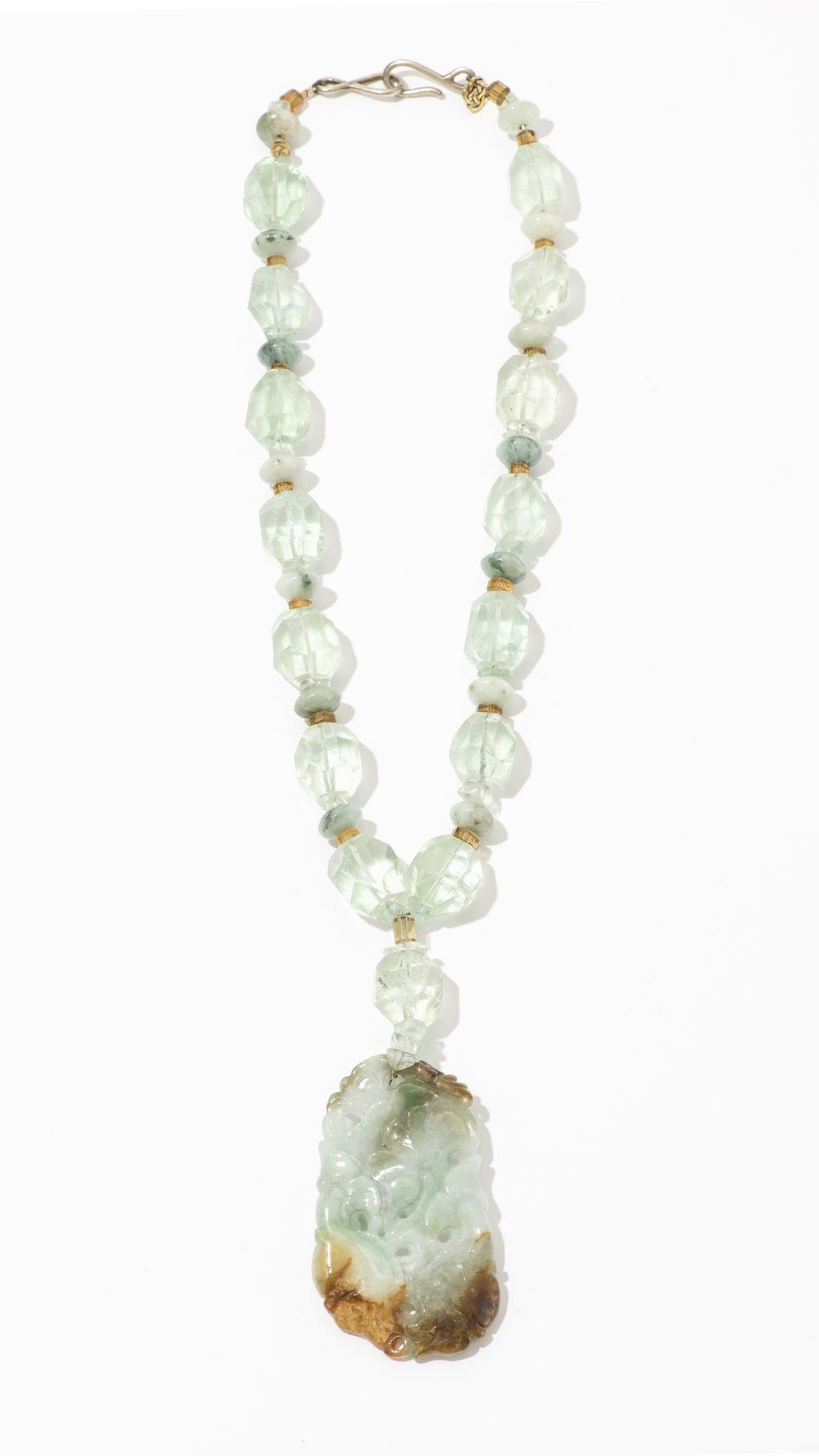 72. Broche de style Art Déco en jade et onyx sertie de diamants et r...