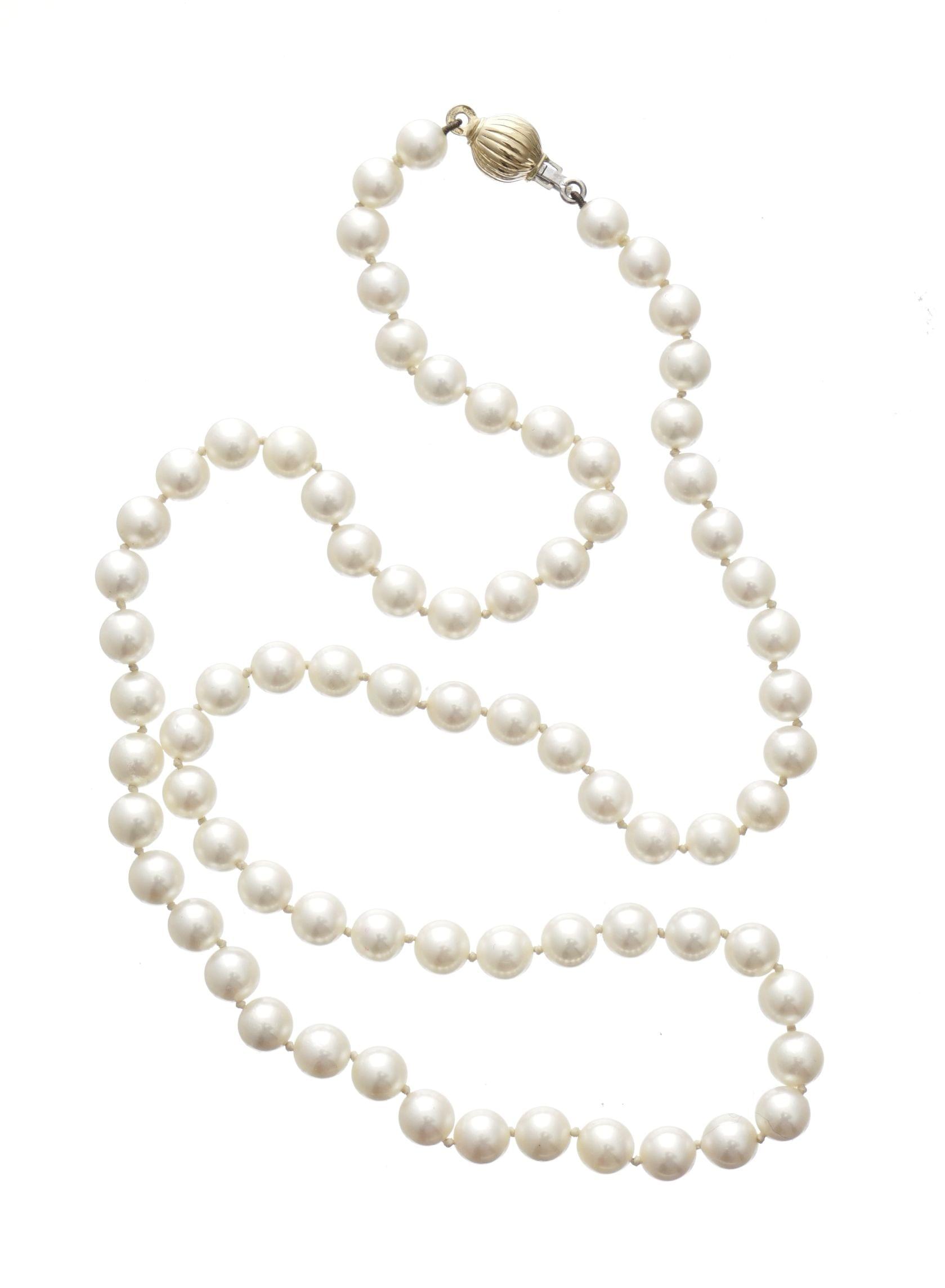 685. Collier de trois rangs de perles terminé par un fermoir à motif...