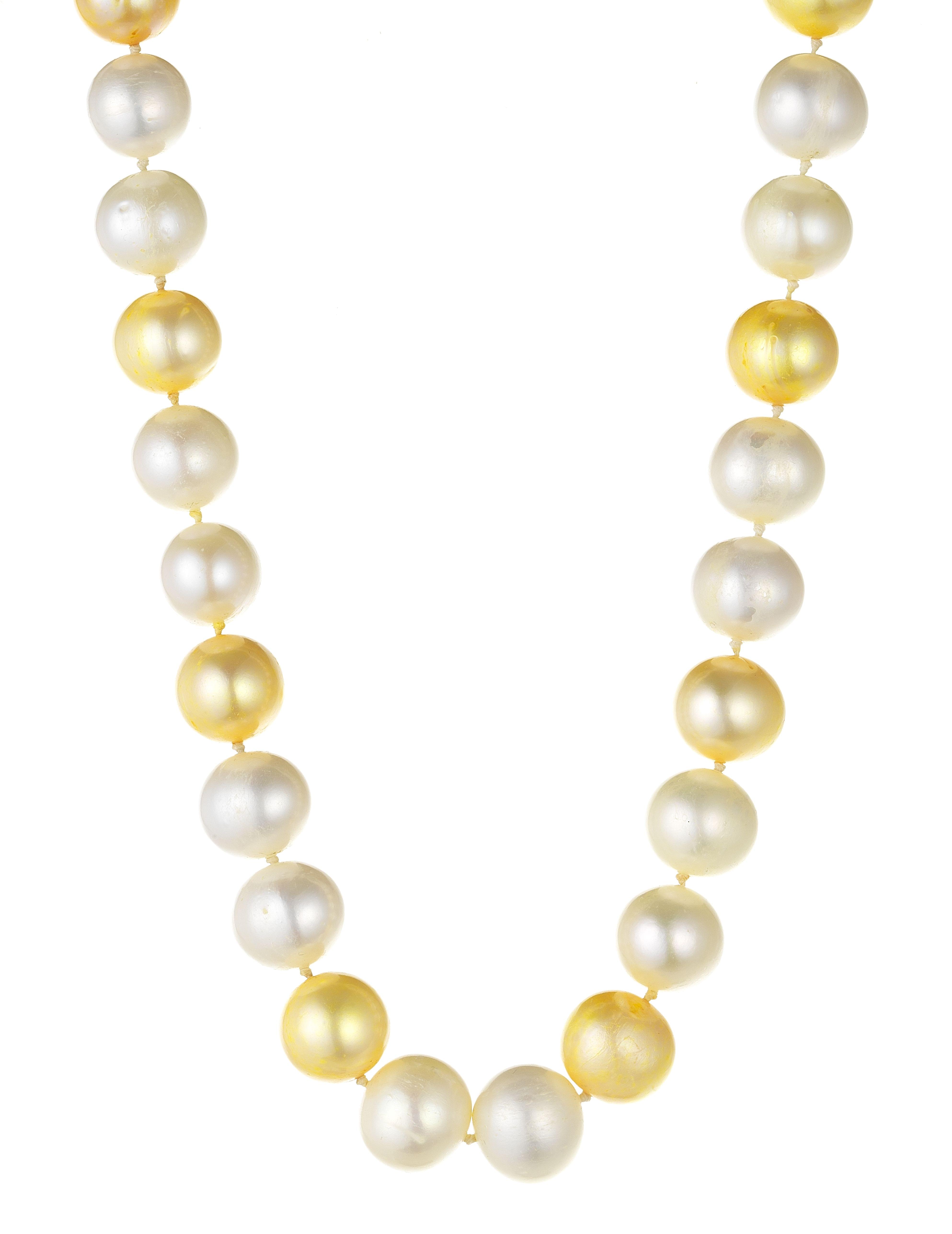 3047. Collier de perles blanches et gold (D env. 10 mm) terminé par un fermoir boule godronné