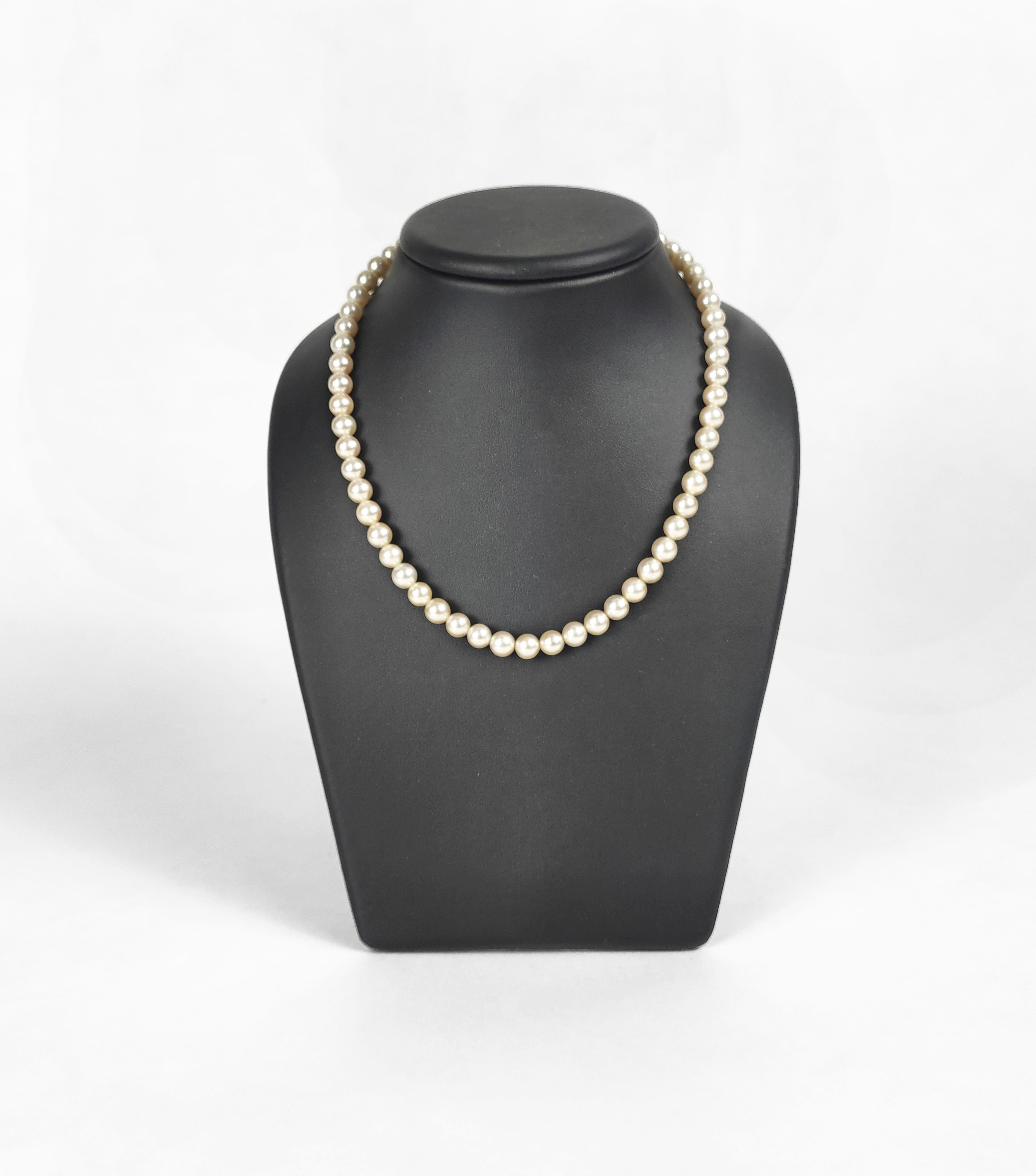 3119. Collier de perles (D env. 7 mm) terminé par un fermoir ajouré