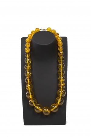 Fermoir en métal doré, L 70 cm. On joint une paire de clips d'oreilles Monies en ambre, H 4,5 cm.