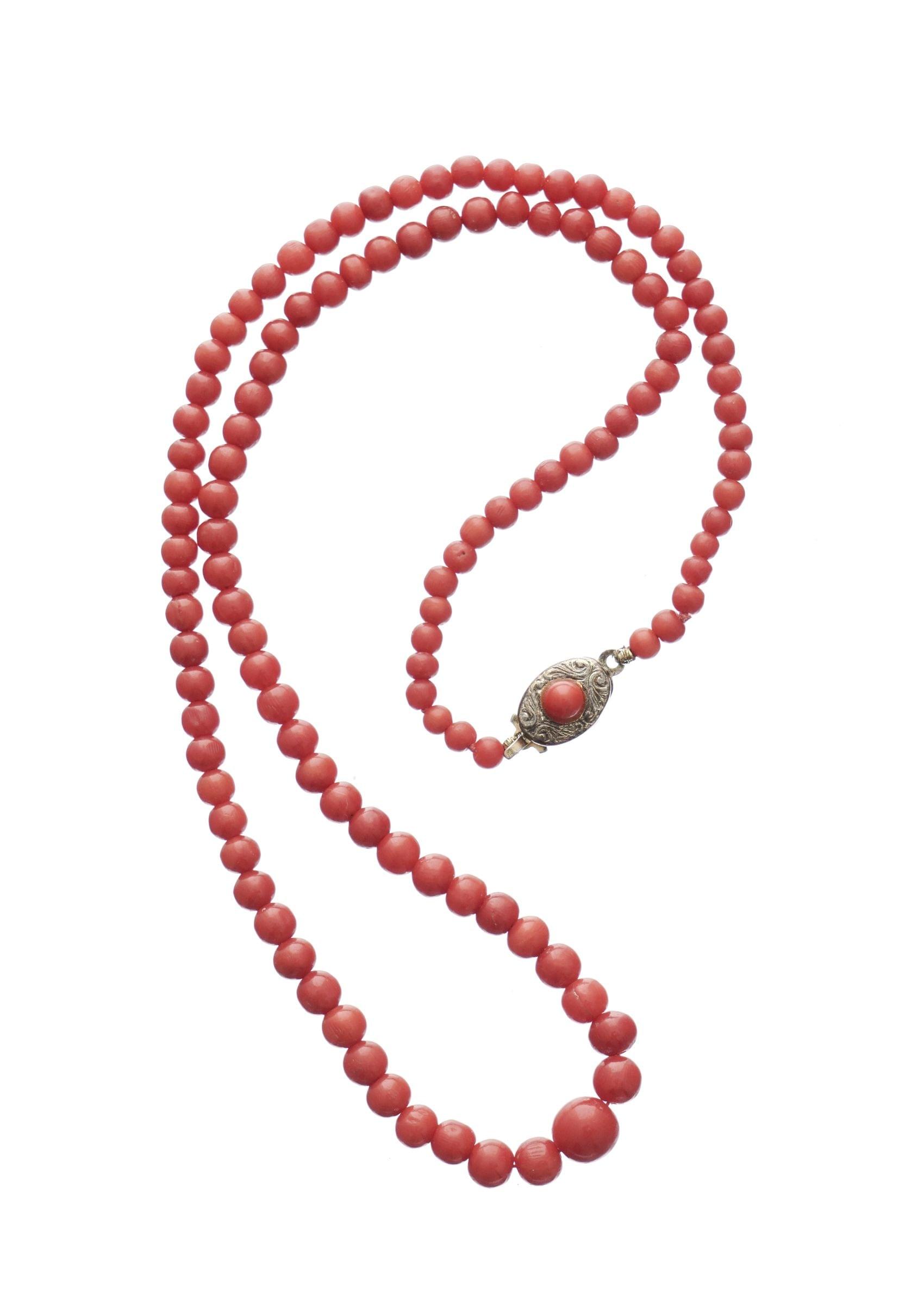 652. Trianon, paire de boutons de manchettes ornés de corail et d'éme...