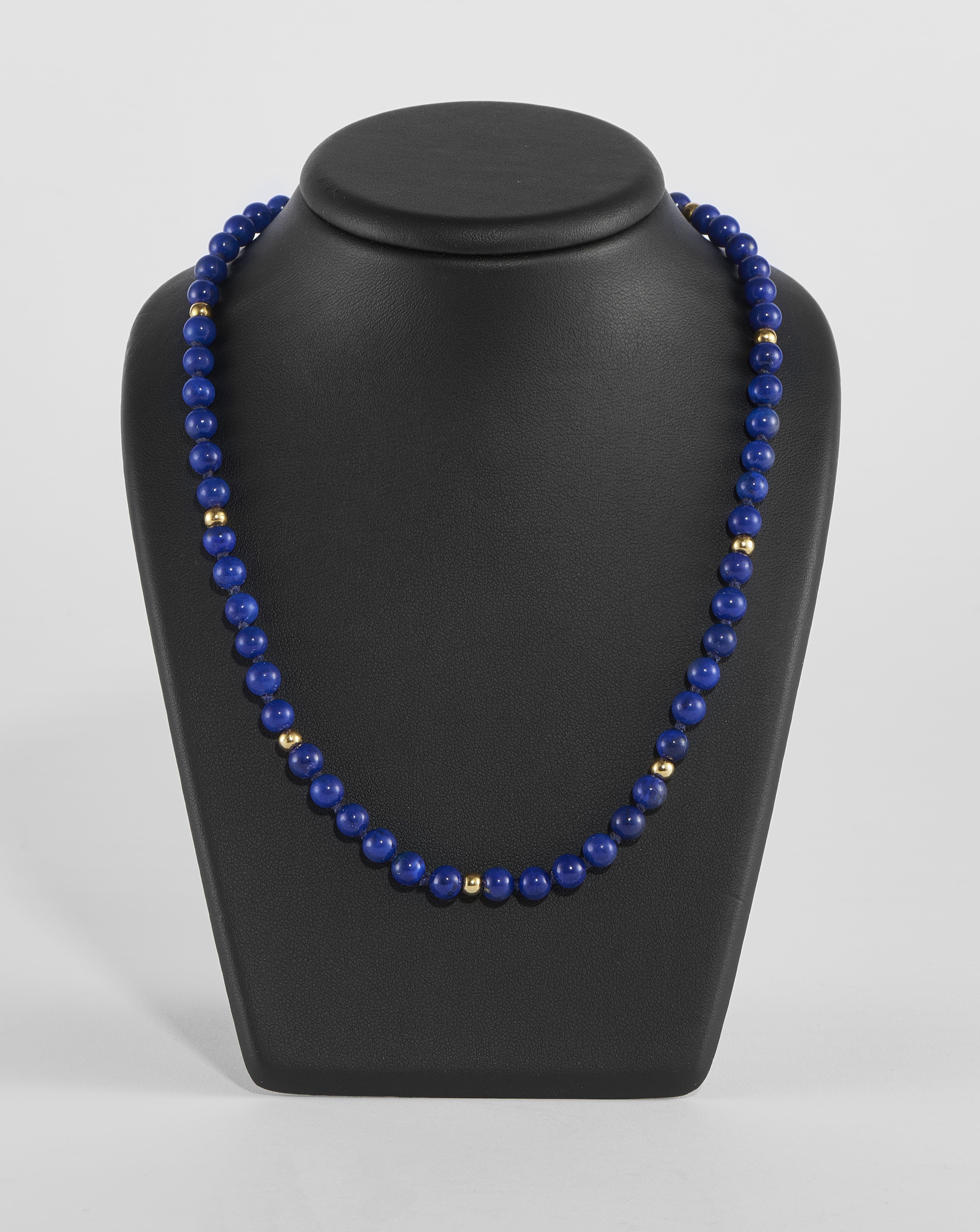 96. Collier à maille entrelacée serti de perles de saphirs et de rub...