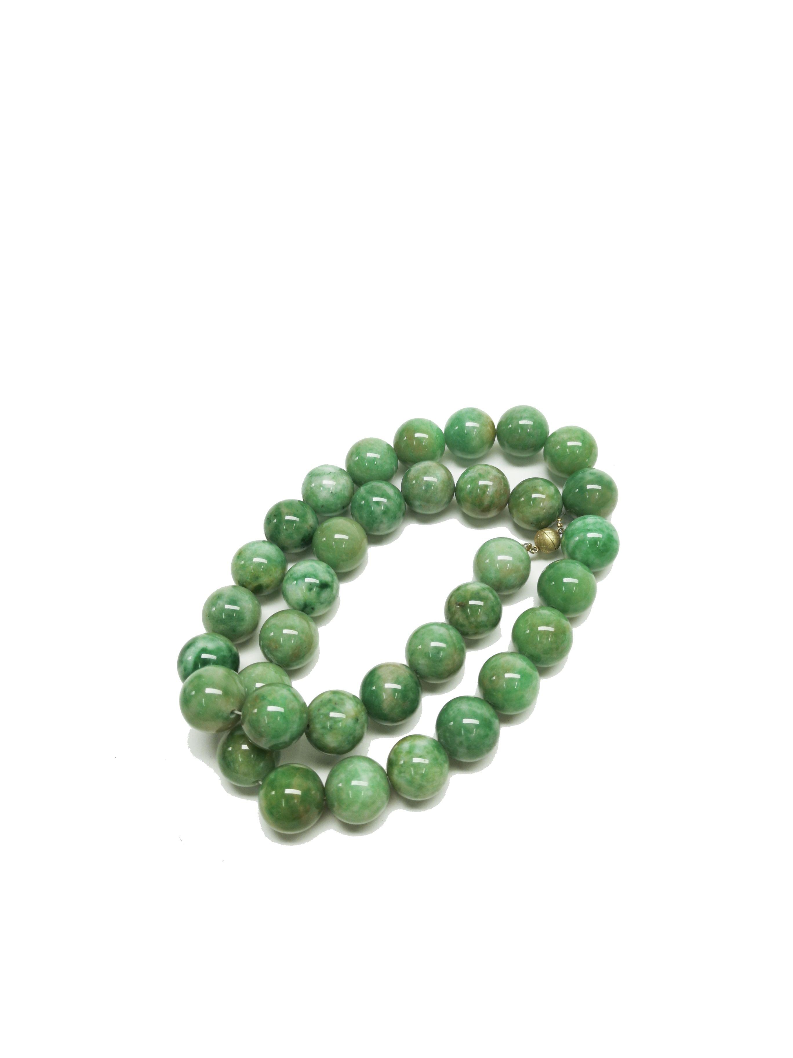 3816. Collier de perles de pierre dure verte, probablement aventurine (D env. 20 mm)