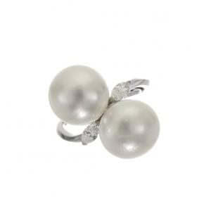 222. Bague toi et moi sertie de deux perles (D 12 mm) épaulées de deu...