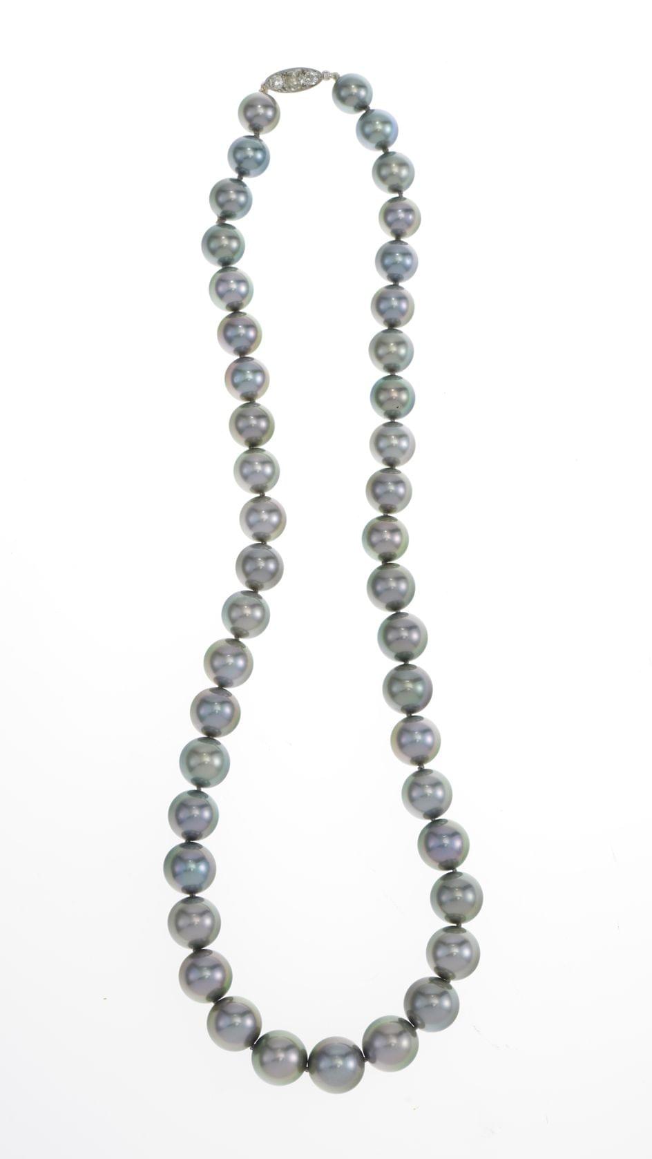 83. Collier de perles de Tahiti et son fermoir serti de 3 diamants