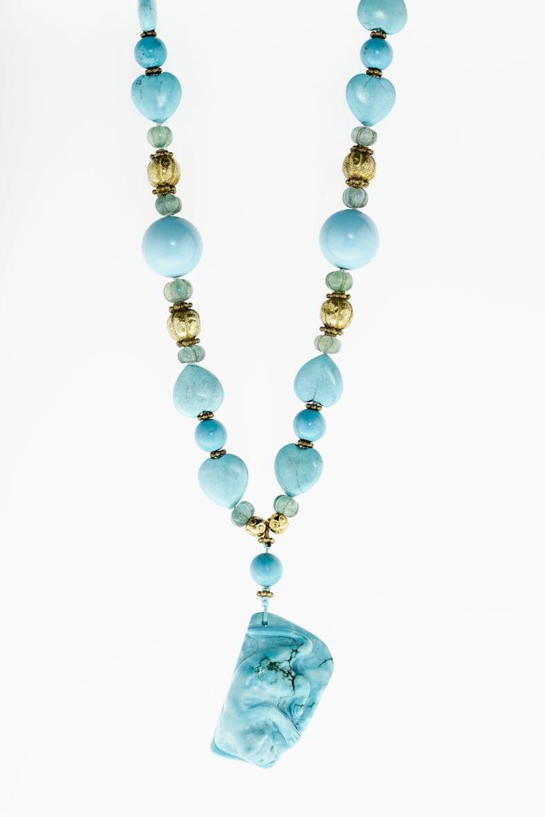 50. Collier à médaillons sertis de jaspe sanguin et d'agate en alter...