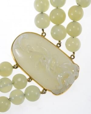 218. Bracelet trois rangs de perles avec médaillon central sculpté d'...