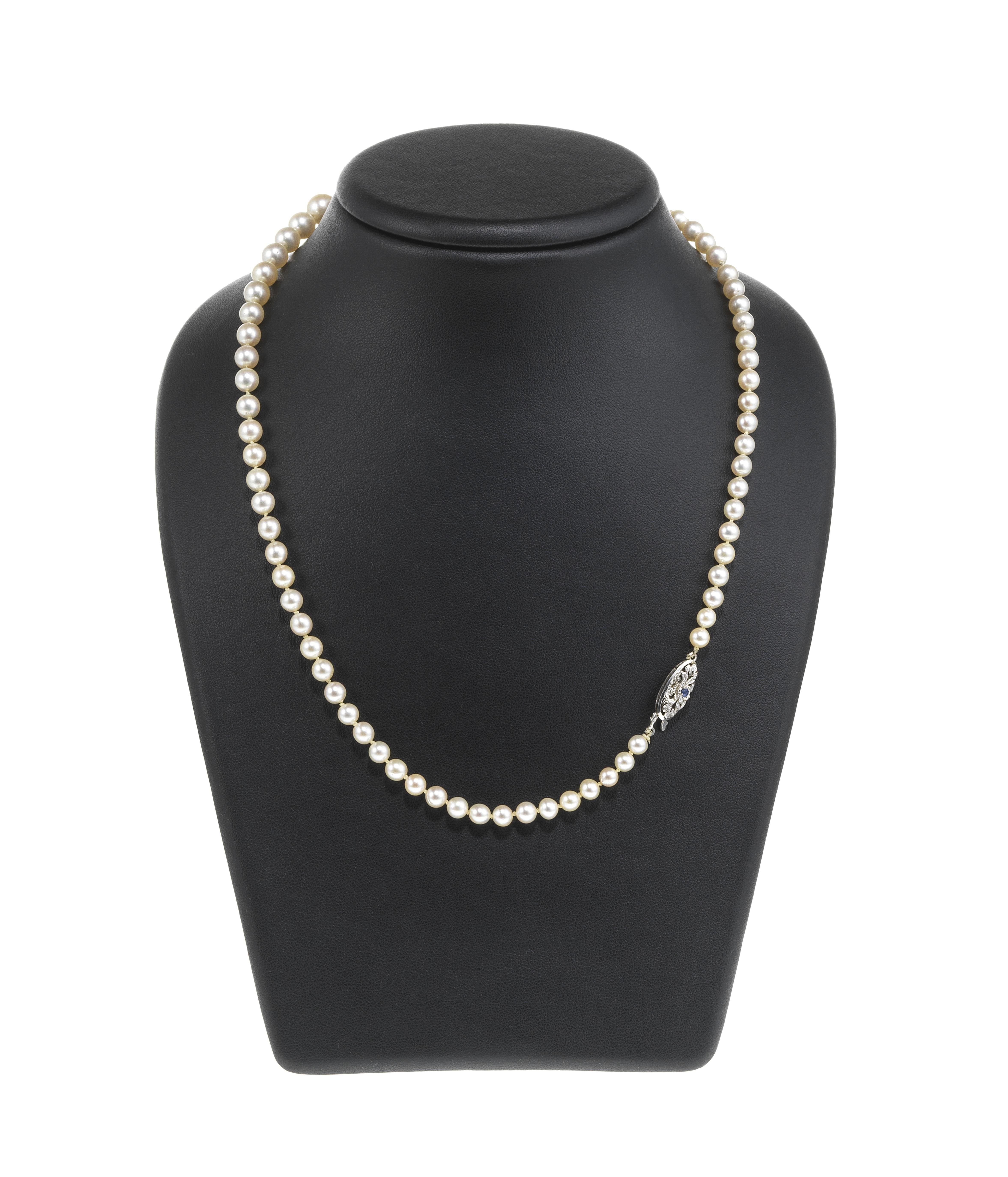 3235. Collier de perles en chute terminé par un fermoir serti d'un saphir