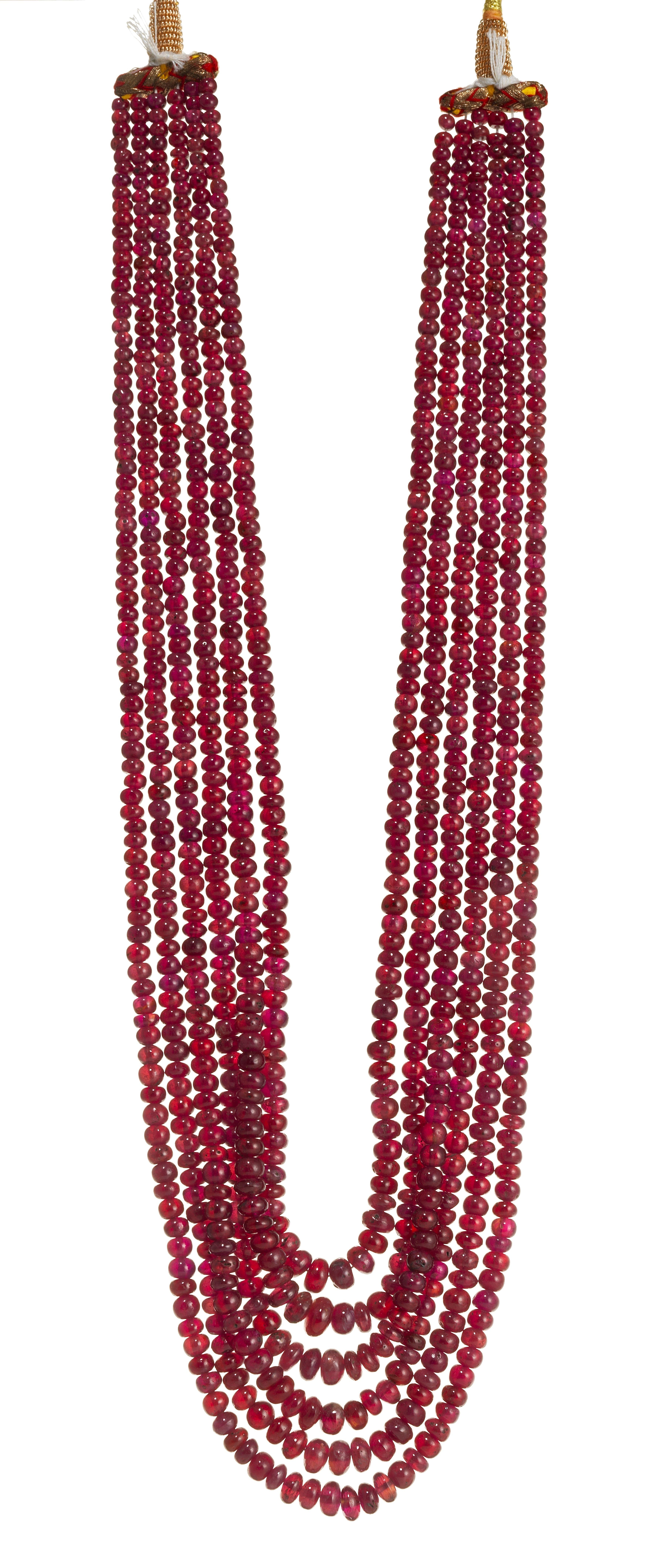 3029. *Collier de six rangs de perles de rubis en chute (env. 600 ct)