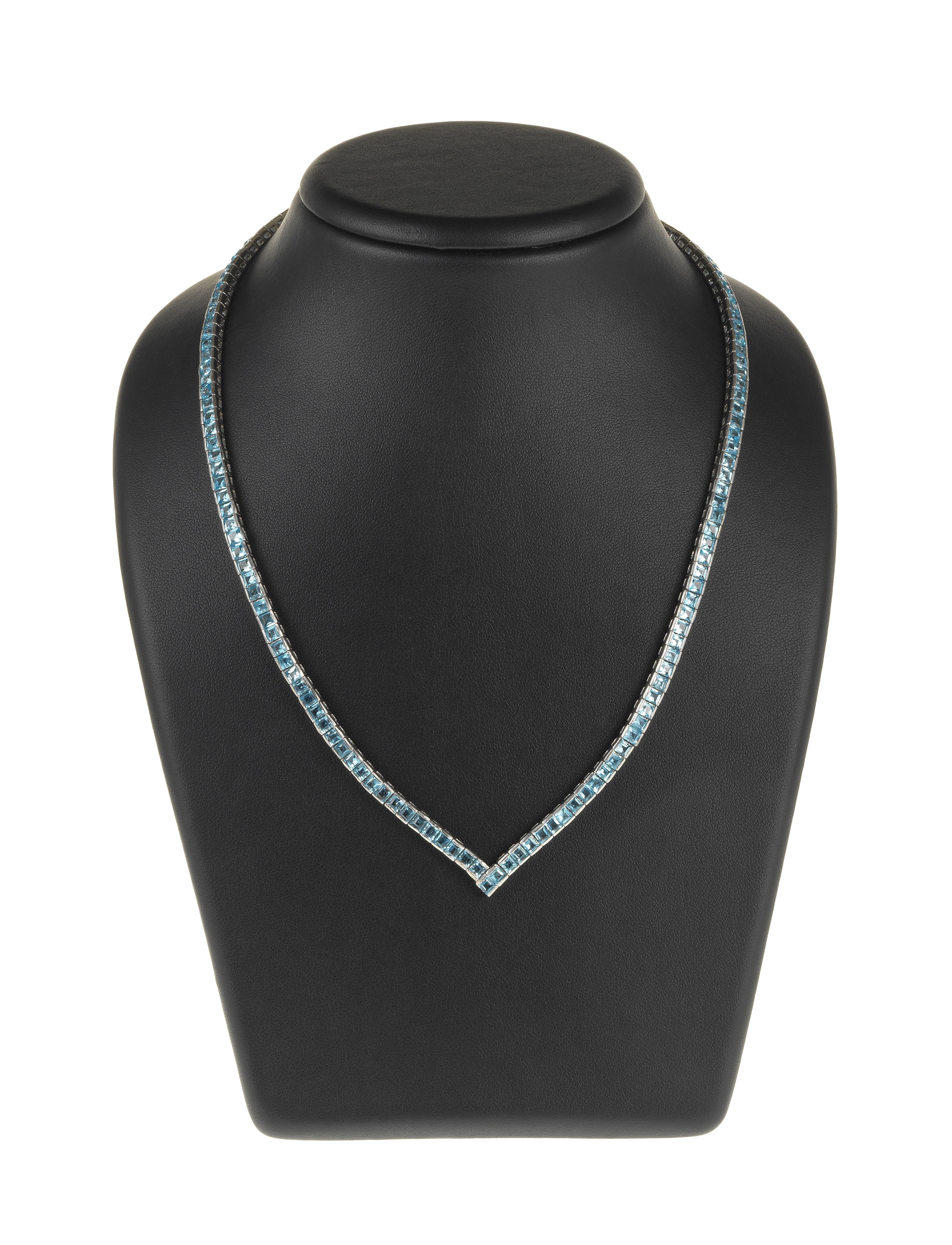 3114. *Collier en chevron composé d'une ligne de topazes bleues taille princesse