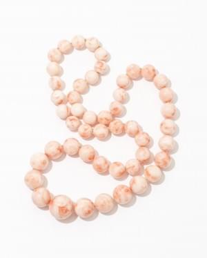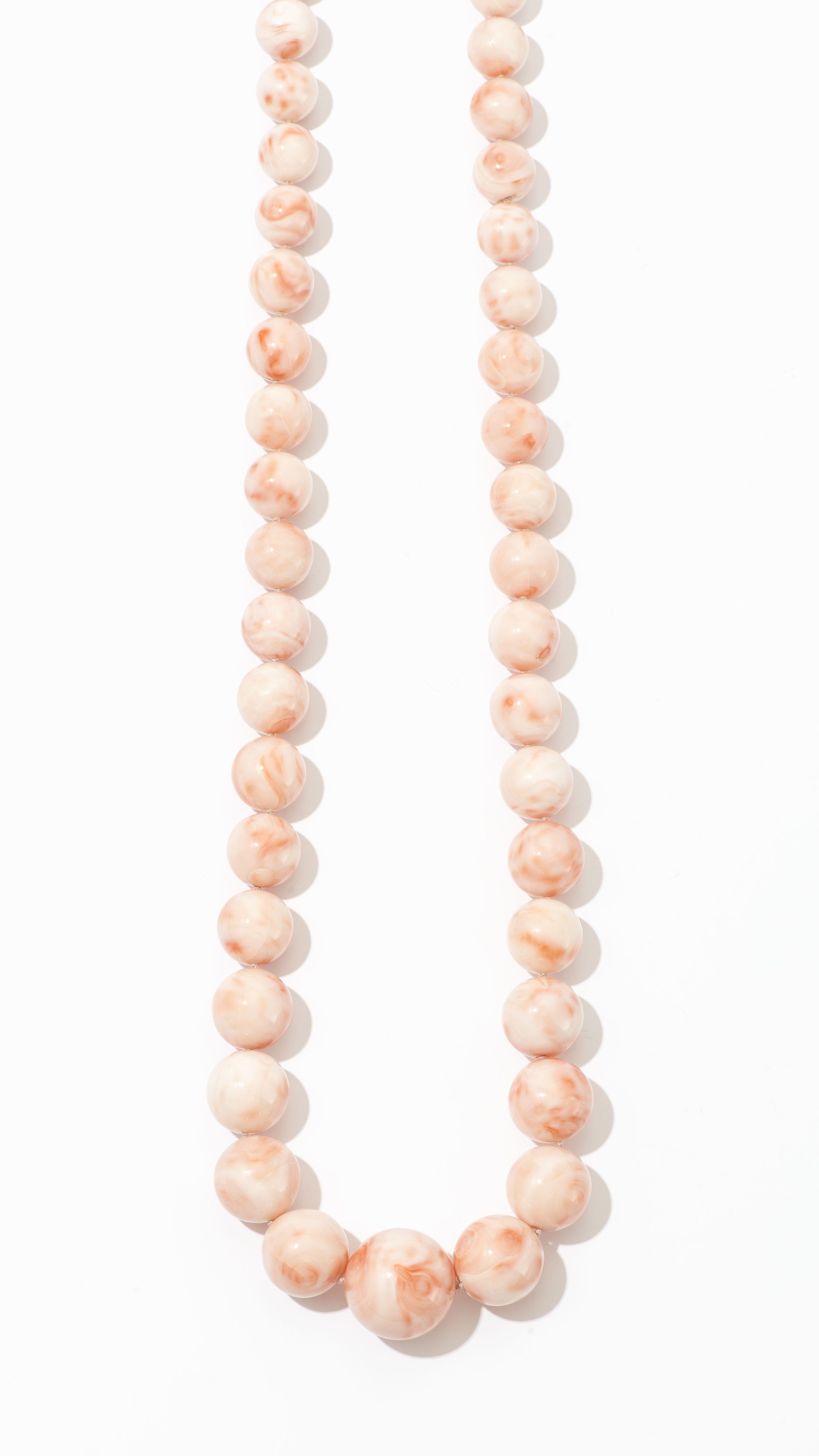 84. Sautoir de boules de jade rose et de quartz rose alternées de bo...