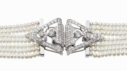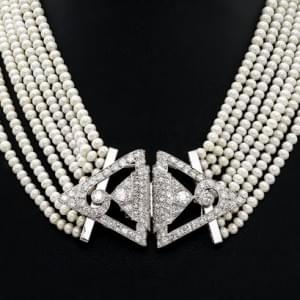 105. Collier multi-rang de perles, fermoir serti de diamants (env. 4 ct)