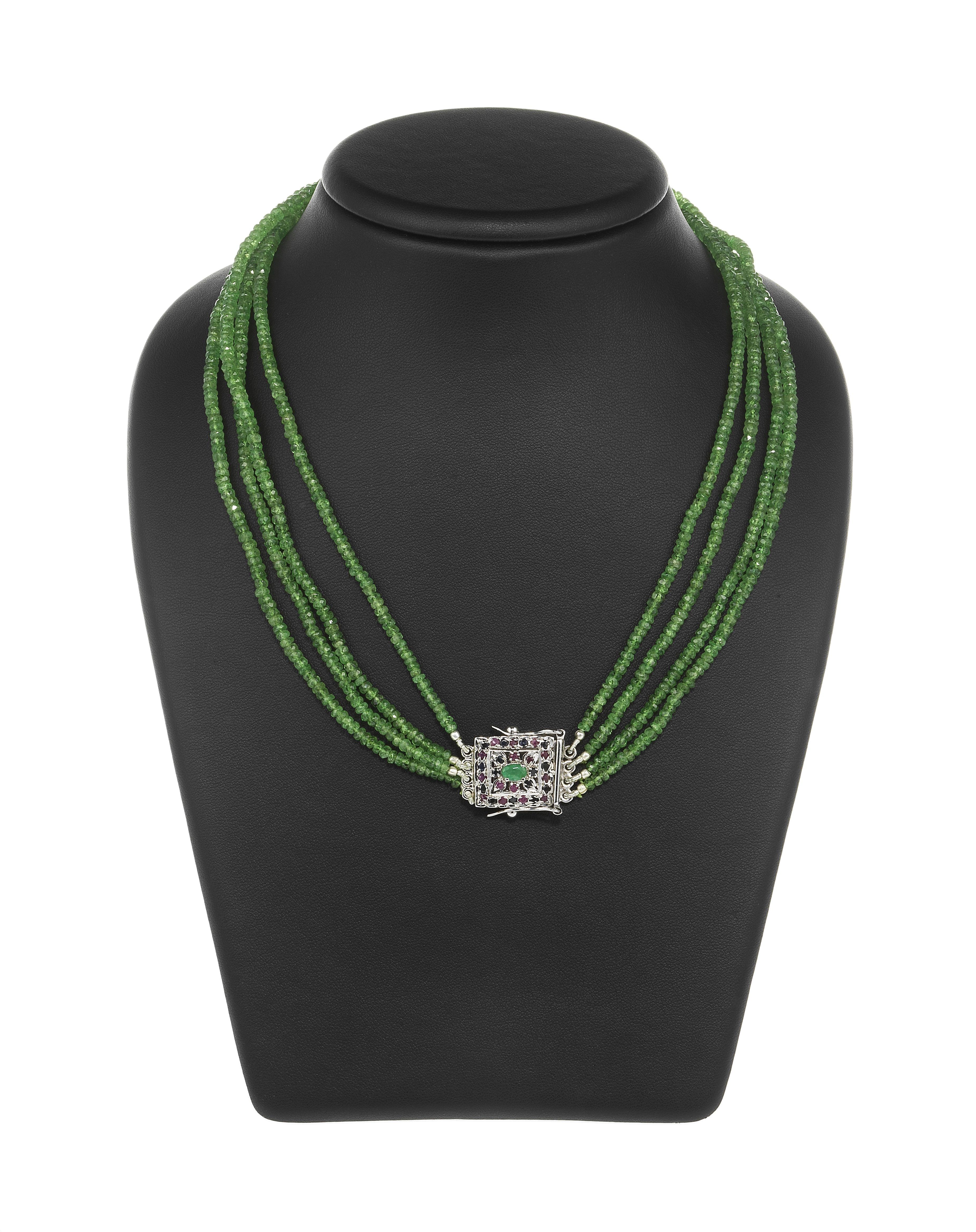 3005. *Collier multi-rangs composé de perles de tsavorites facettées