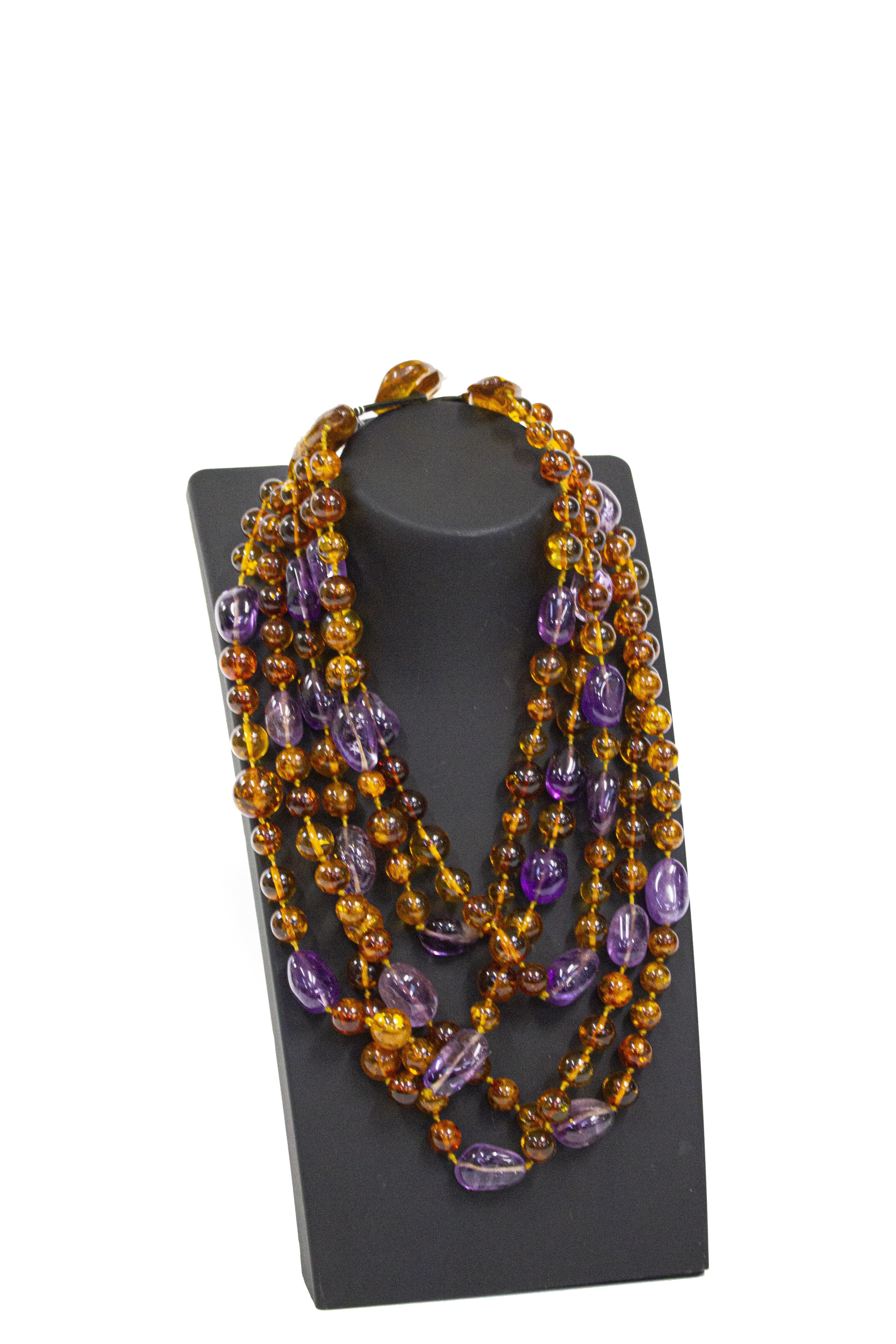 3130. Collier multi-rangs de perles d'ambre et d'améthyste