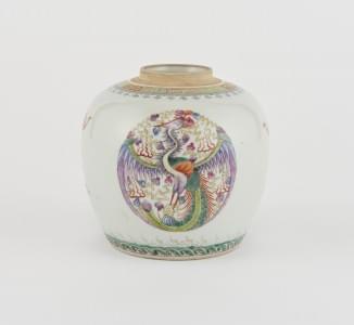 Porcelaine émaillée polychrome à décor de deux médaillons avec p...