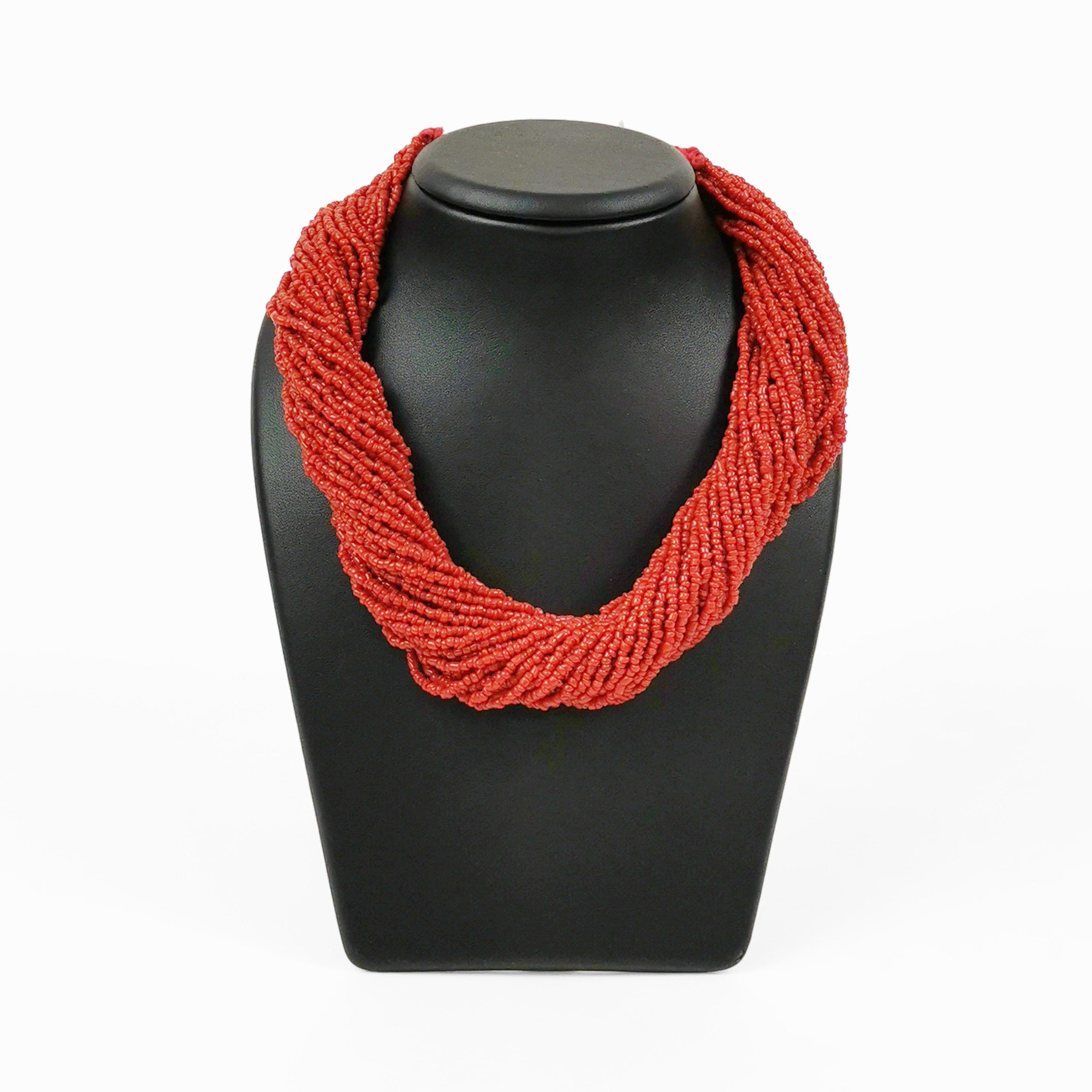 3024. Collier multi-rangs tour de cou composé de perles de corail rouge