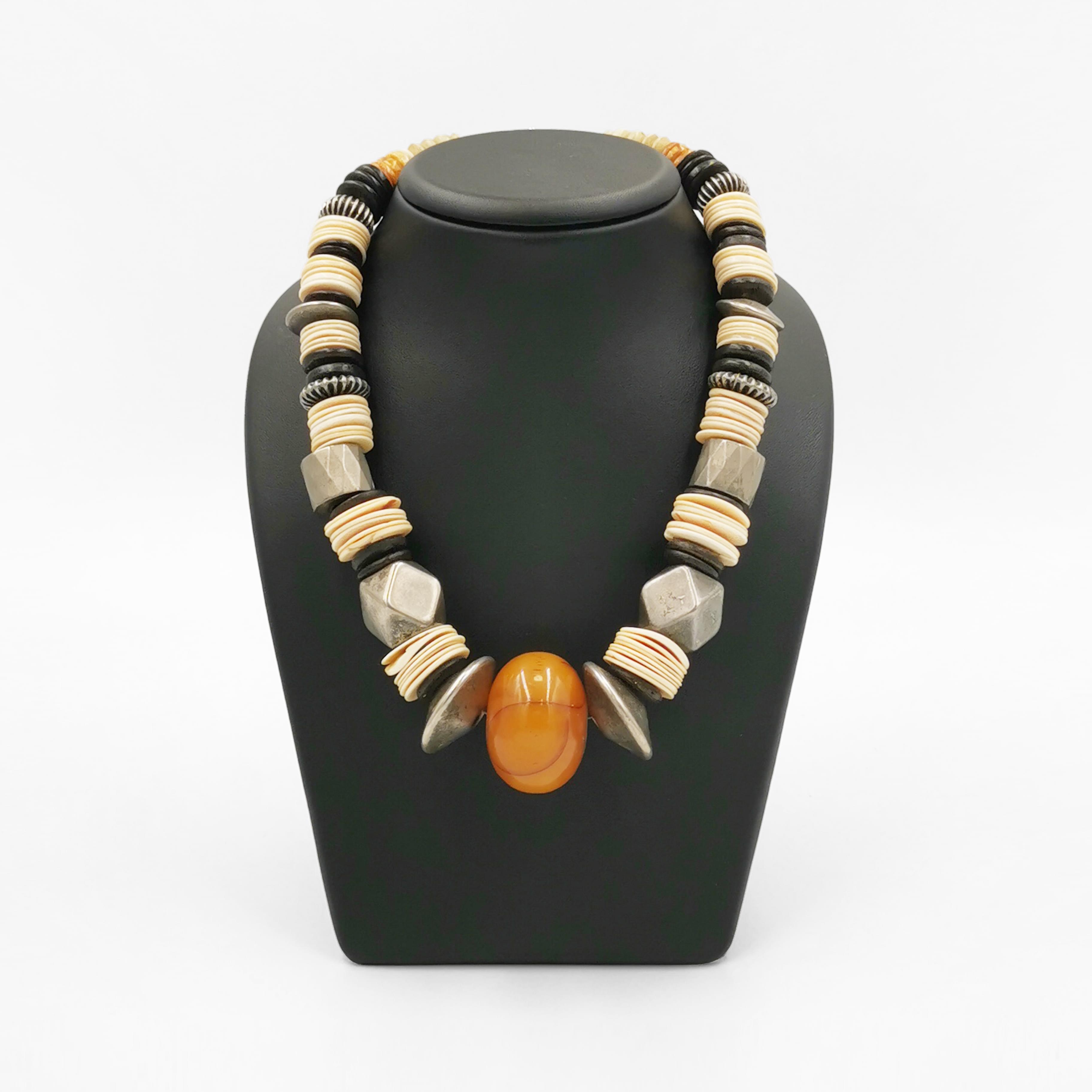 117. Gilbert Albert, collier tour de cou stylisé pavé de perles en bo...