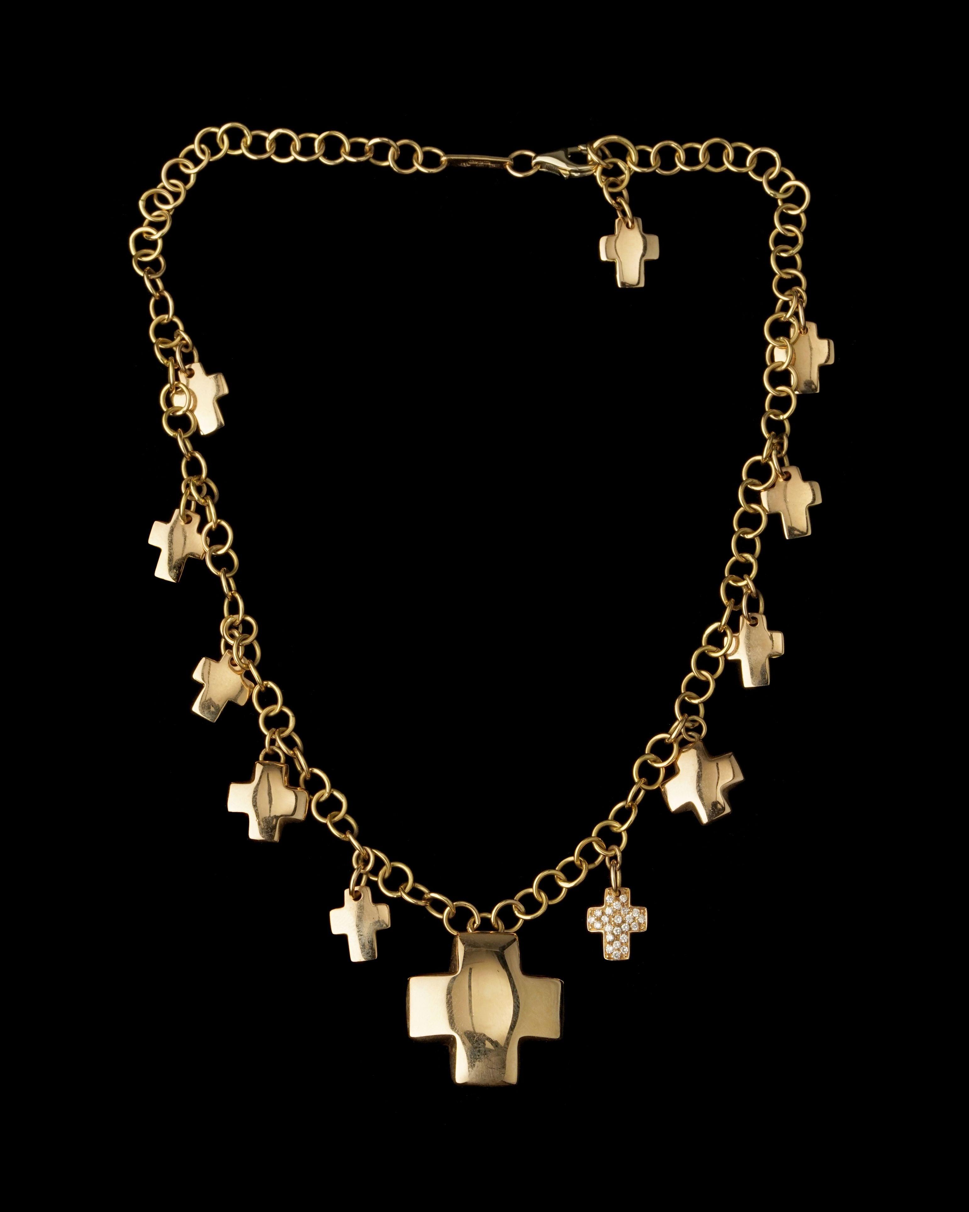 741. Collier retenant des pendeloques croix, dont une sertie de diamants