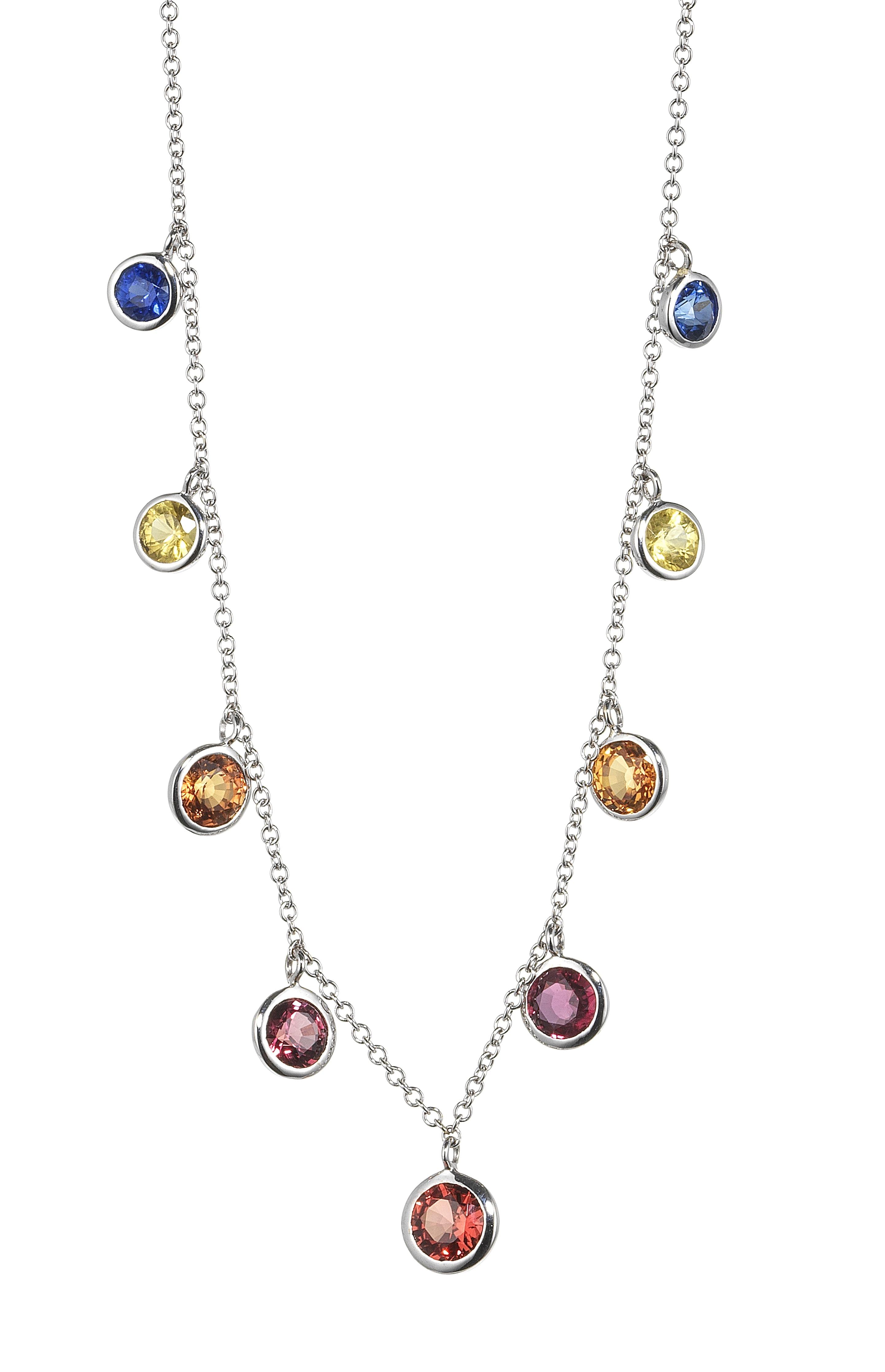 20. Collier à maille plate terminé par un motif serti de saphirs