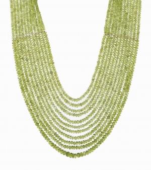 235. Collier multi-rangs de billes de péridots facettés (env. 1'000 c...