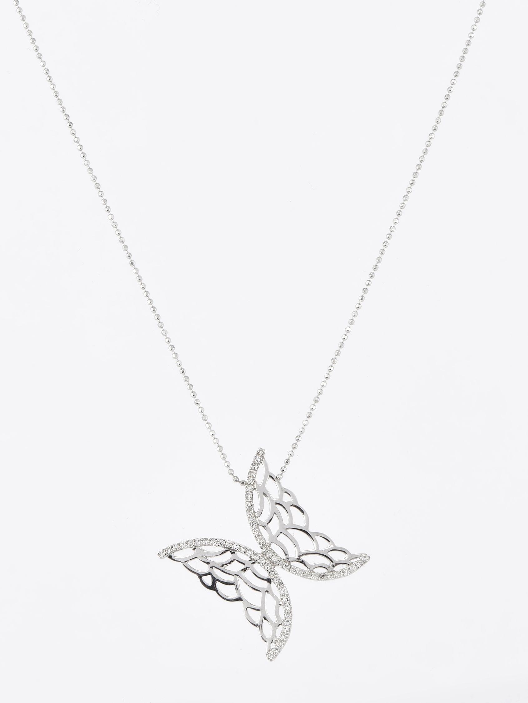 3244. Collier retenant un pendentif papillon ajouré serti de diamants