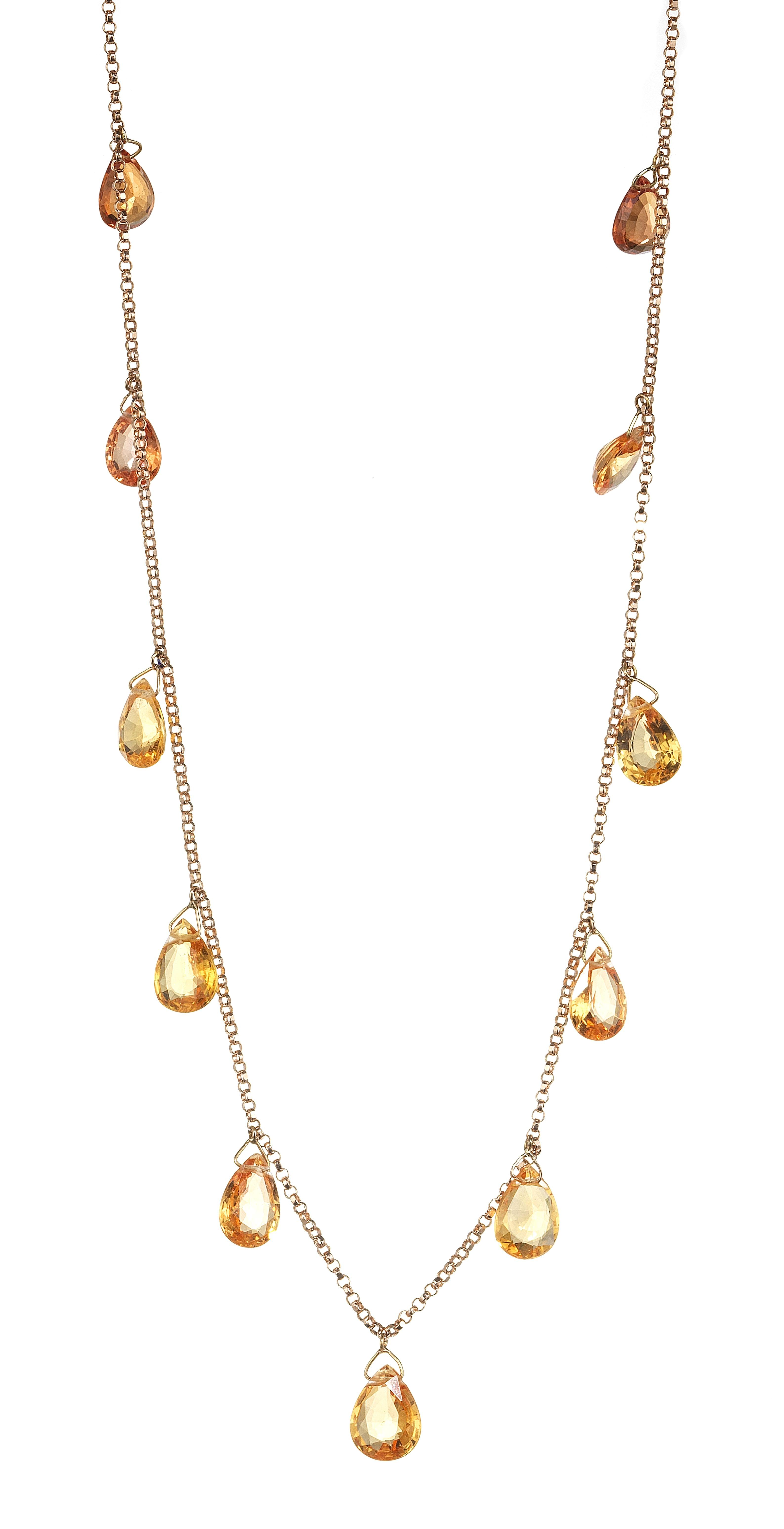 3356. Collier serti d'une chute de saphirs oranges taille poire