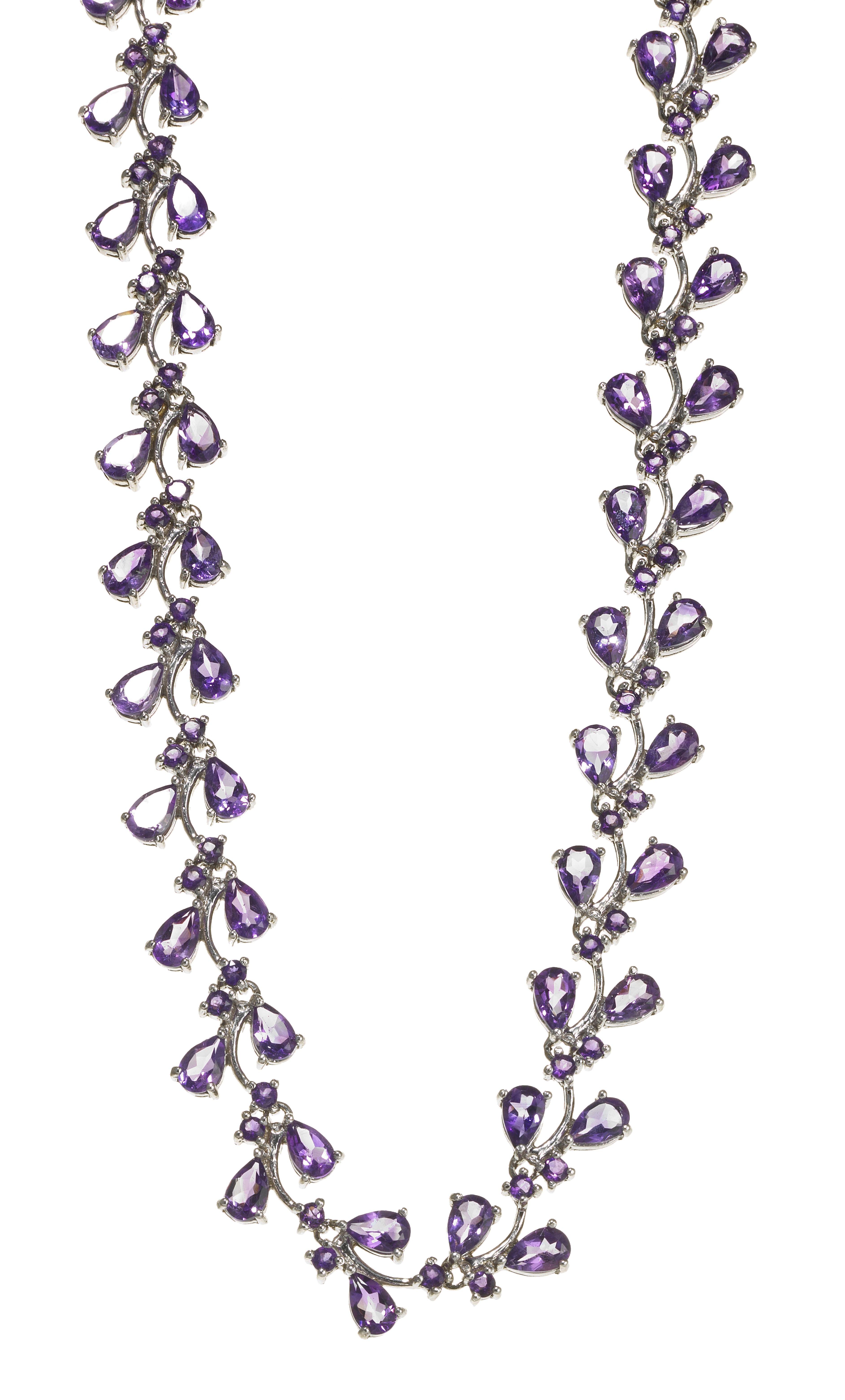 3157. *Collier tour de cou à effet feuillagé pavé d'améthystes taille poire et brillant