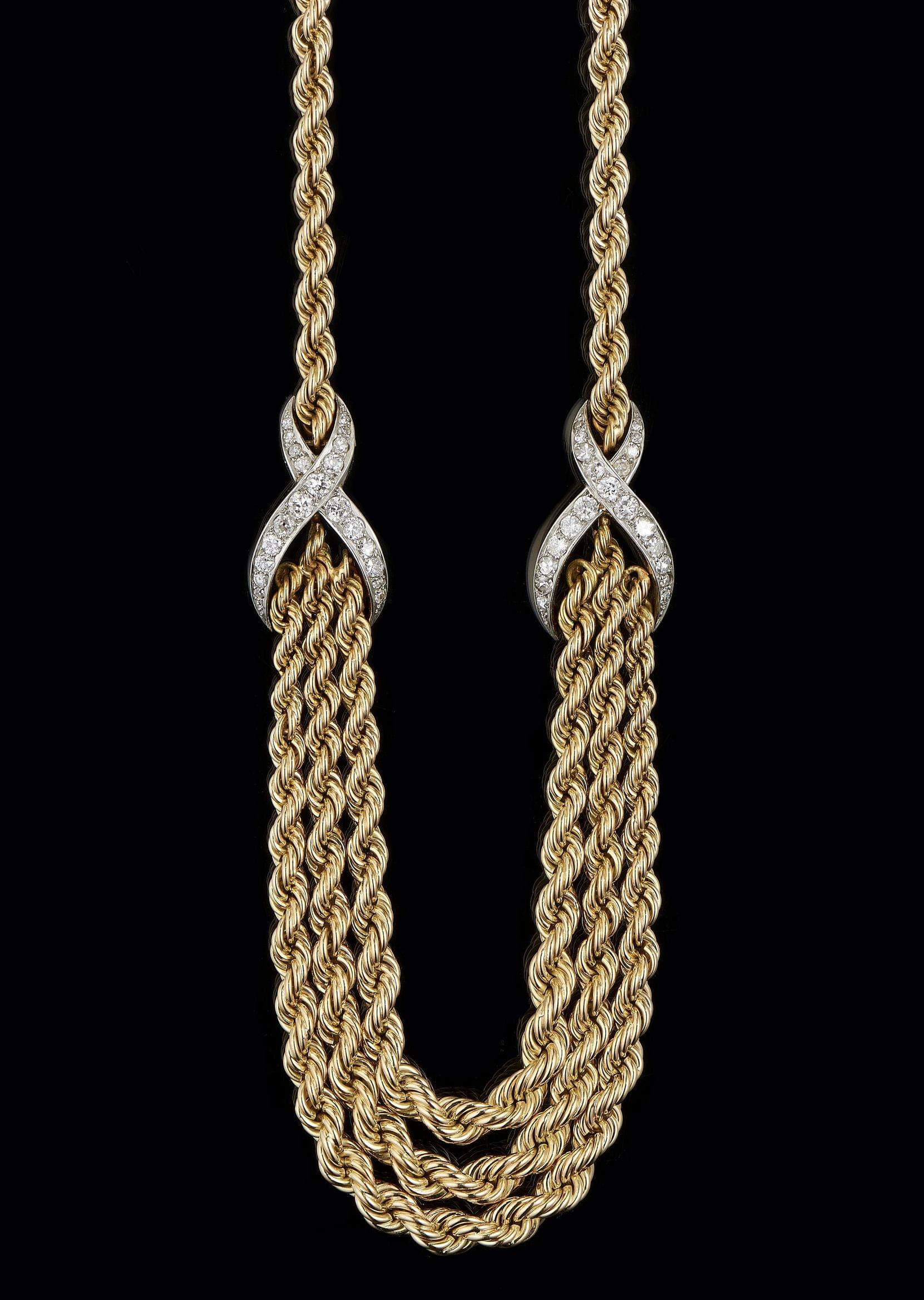 109. Collier tour de cou à maille torsadée retenant des motifs sertis de diamants