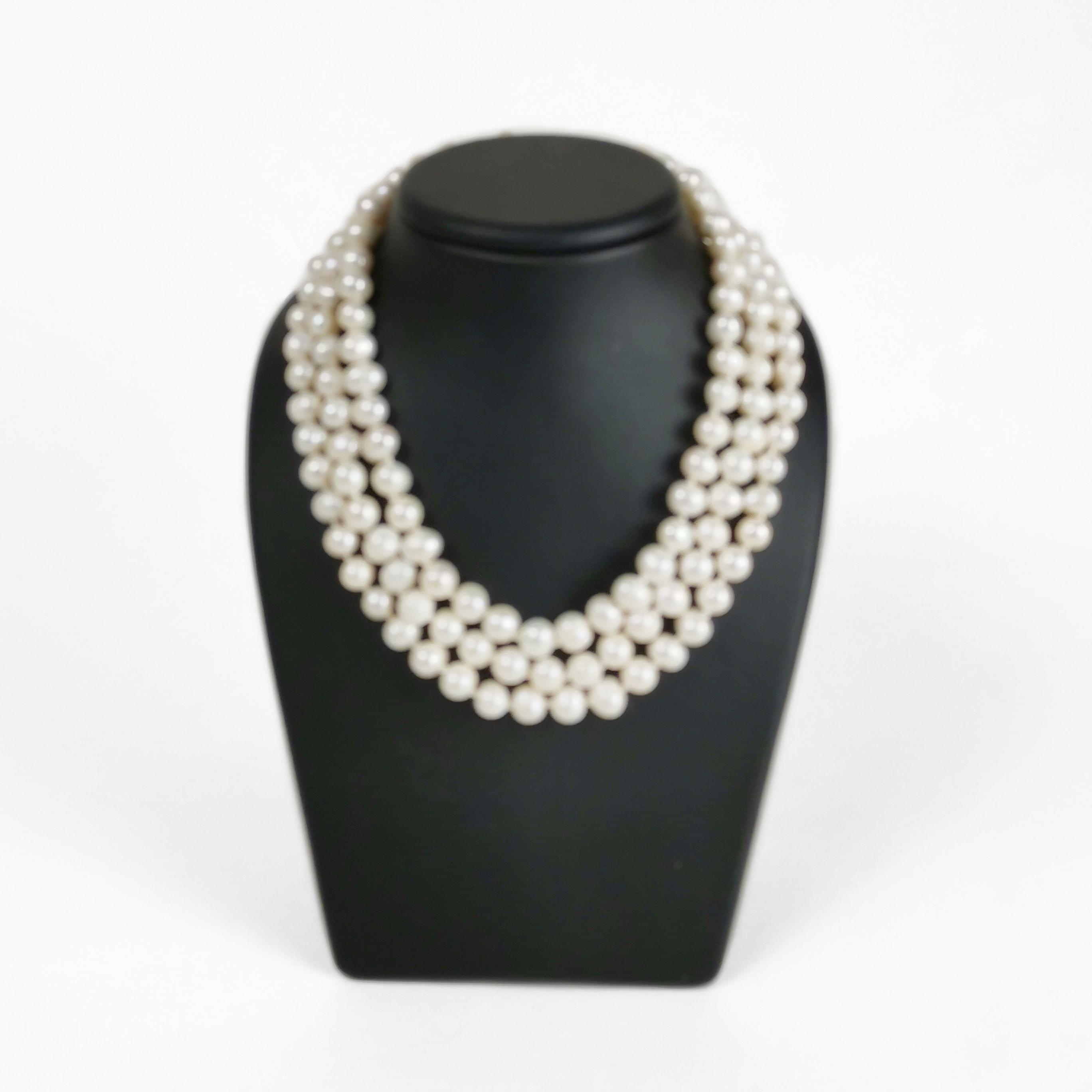 3036. Collier tour de cou composé de trois rangs de perles d'eau douce