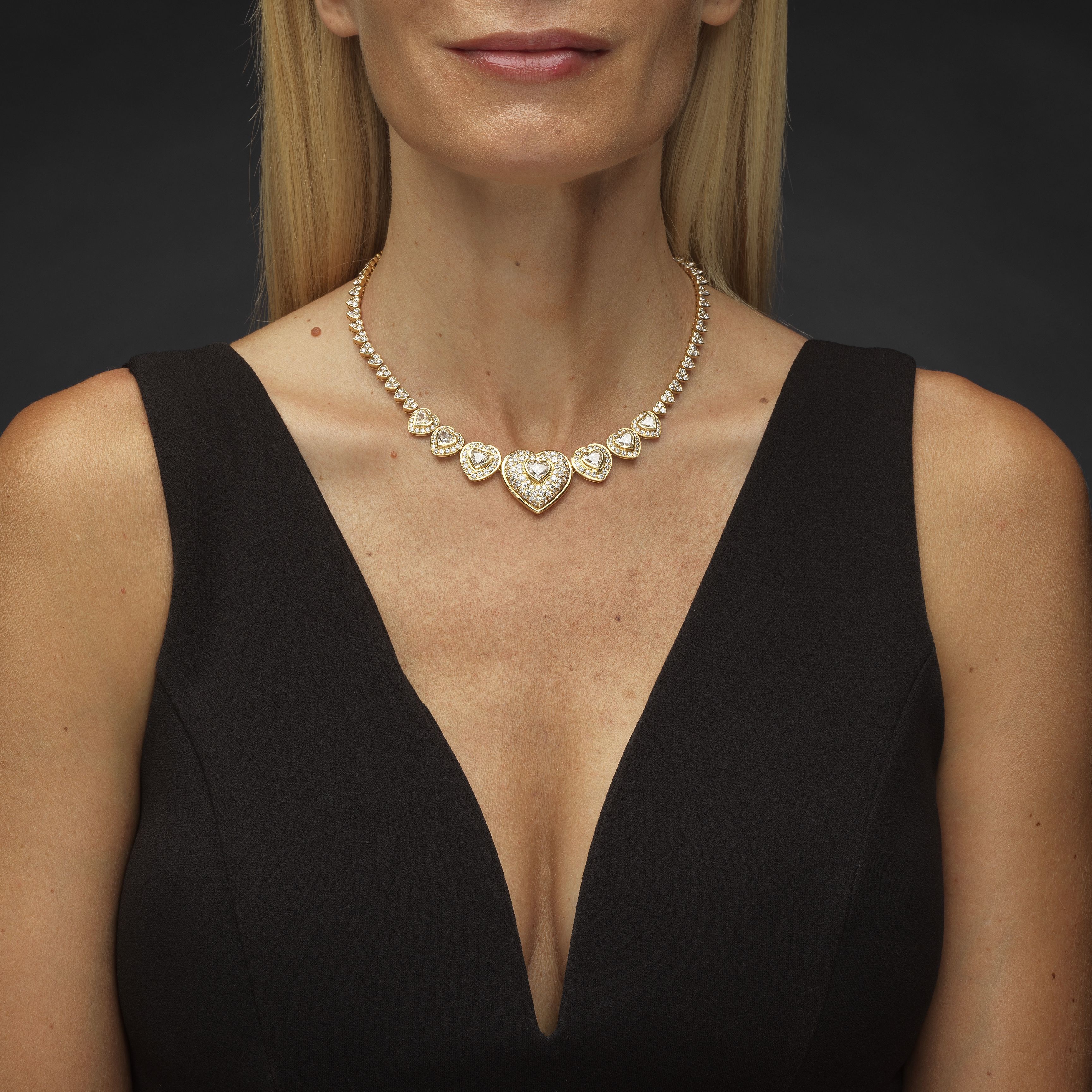 45. Collier tour de cou entièrement composé de motifs de cœurs pavés de diamants