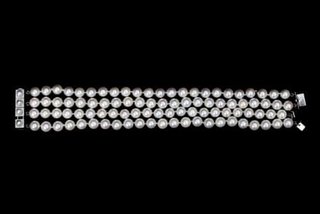 793. Bracelet manchette composé de quatre rangs de perles pouvant se...