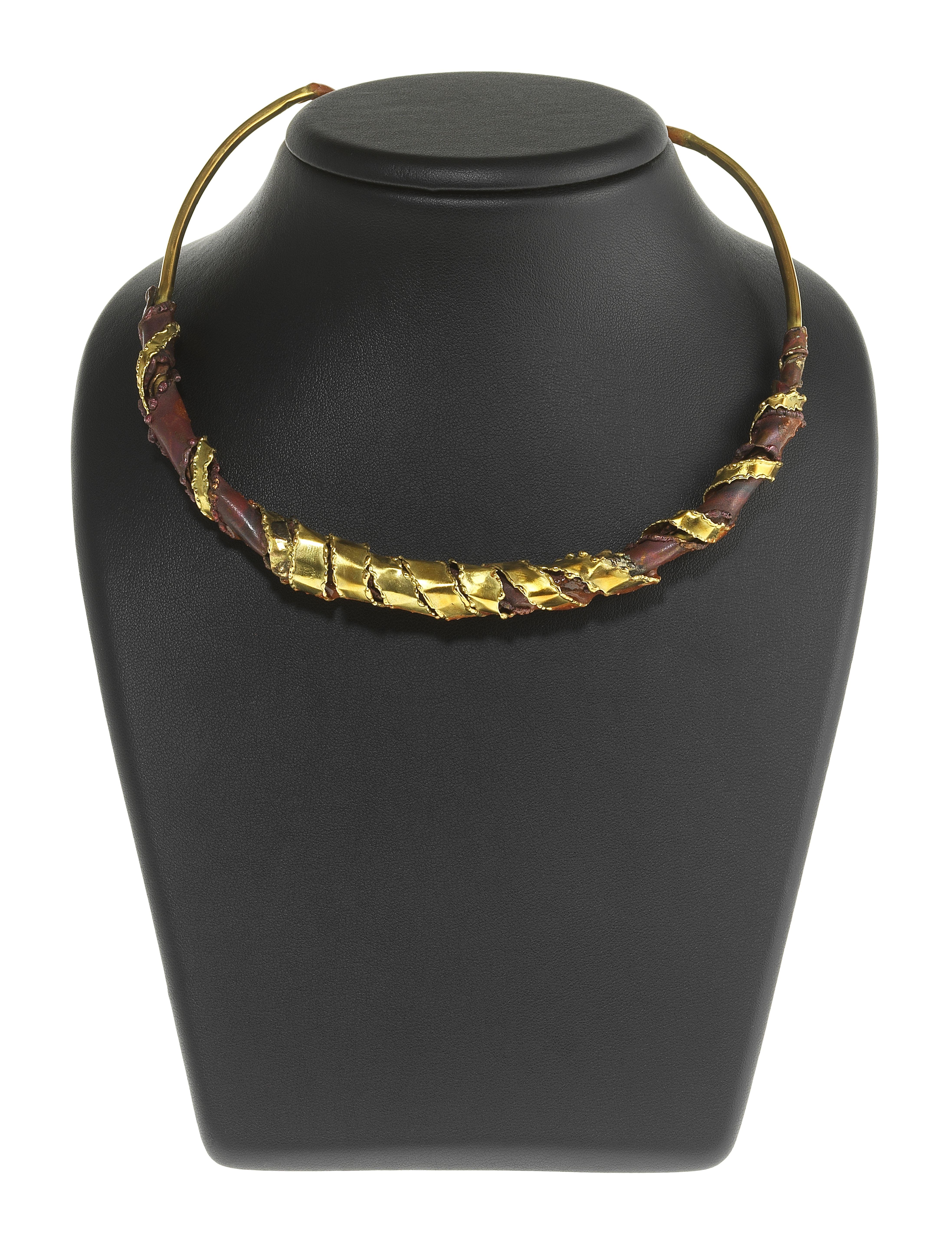 3500. Collier tour de cou ouvert à motif stylisé et résine ocre
