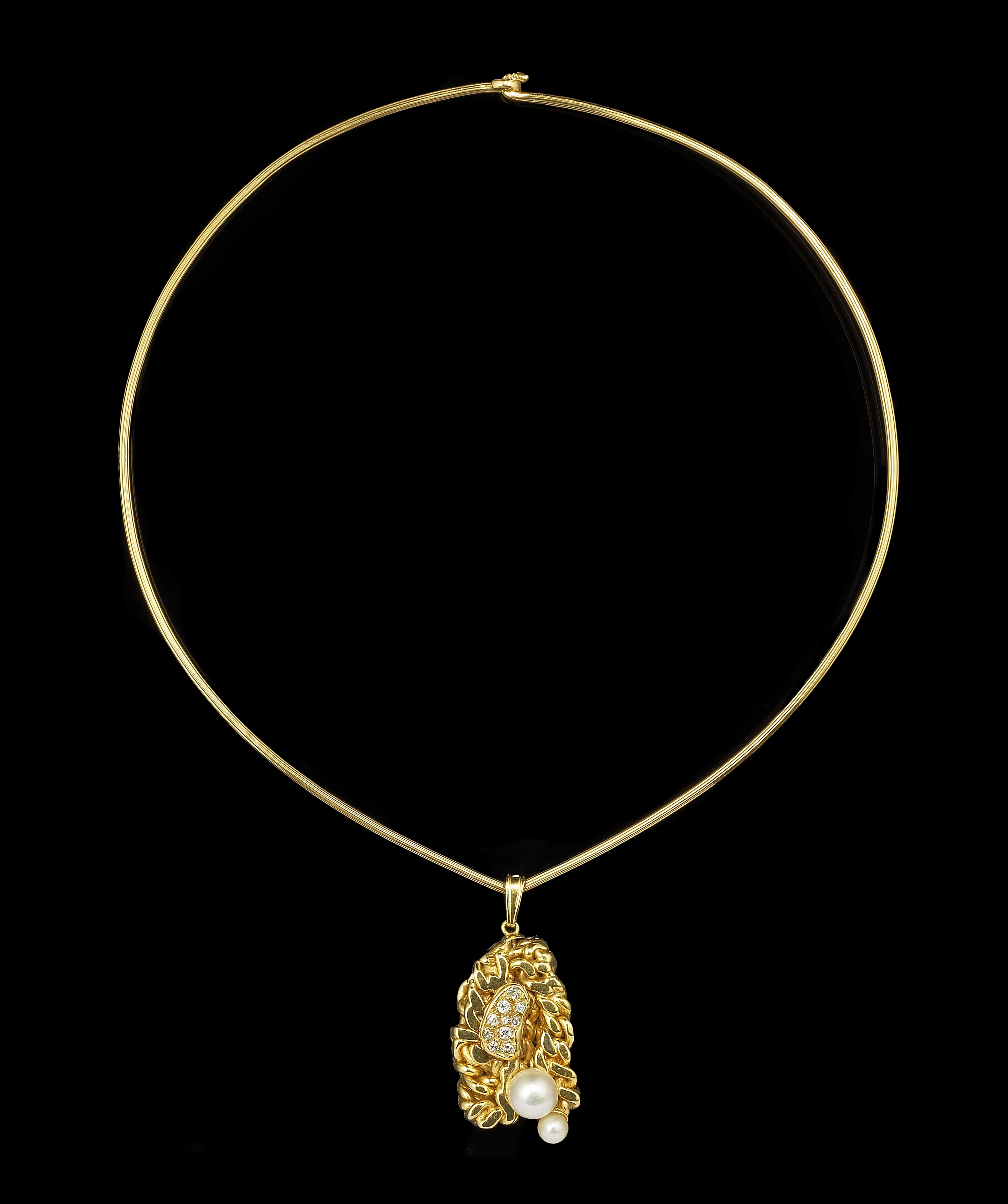 114. Gilbert Albert, collier tour de cou à maille froissée retenant e...