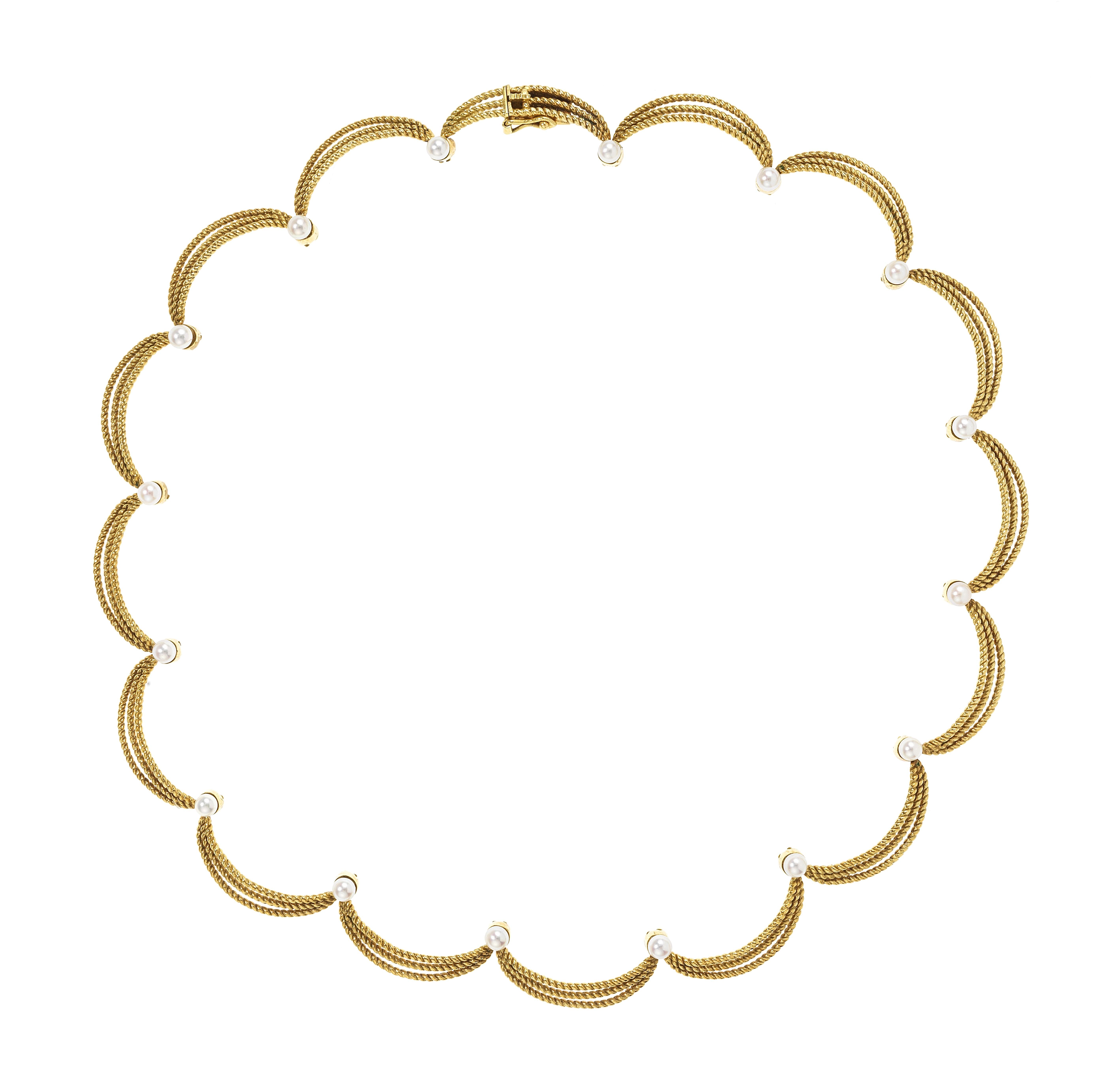 3455. Collier tour de cou stylisé serti de perles (D env. 3,8 mm)