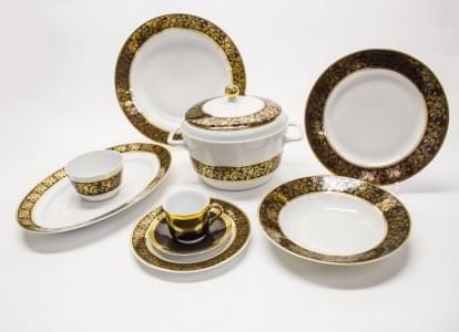 3276. Service à dessert à bandeau chocolat décoré de fleurs or