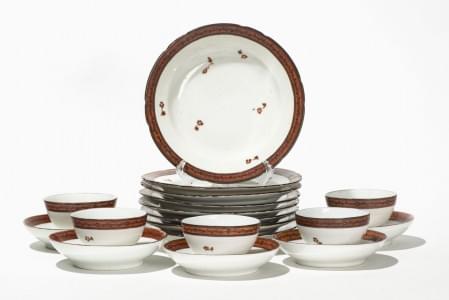 Tchécoslovaquie, porcelaine, comprenant: 6 assiettes plates, 6 c...