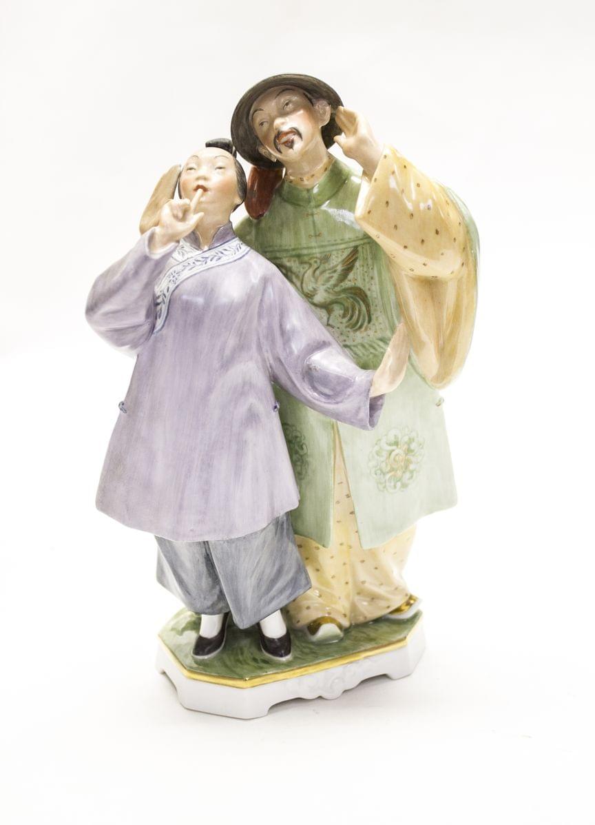 Deux sujets, porcelaine émaillée au naturel, H 10 et 14 cm