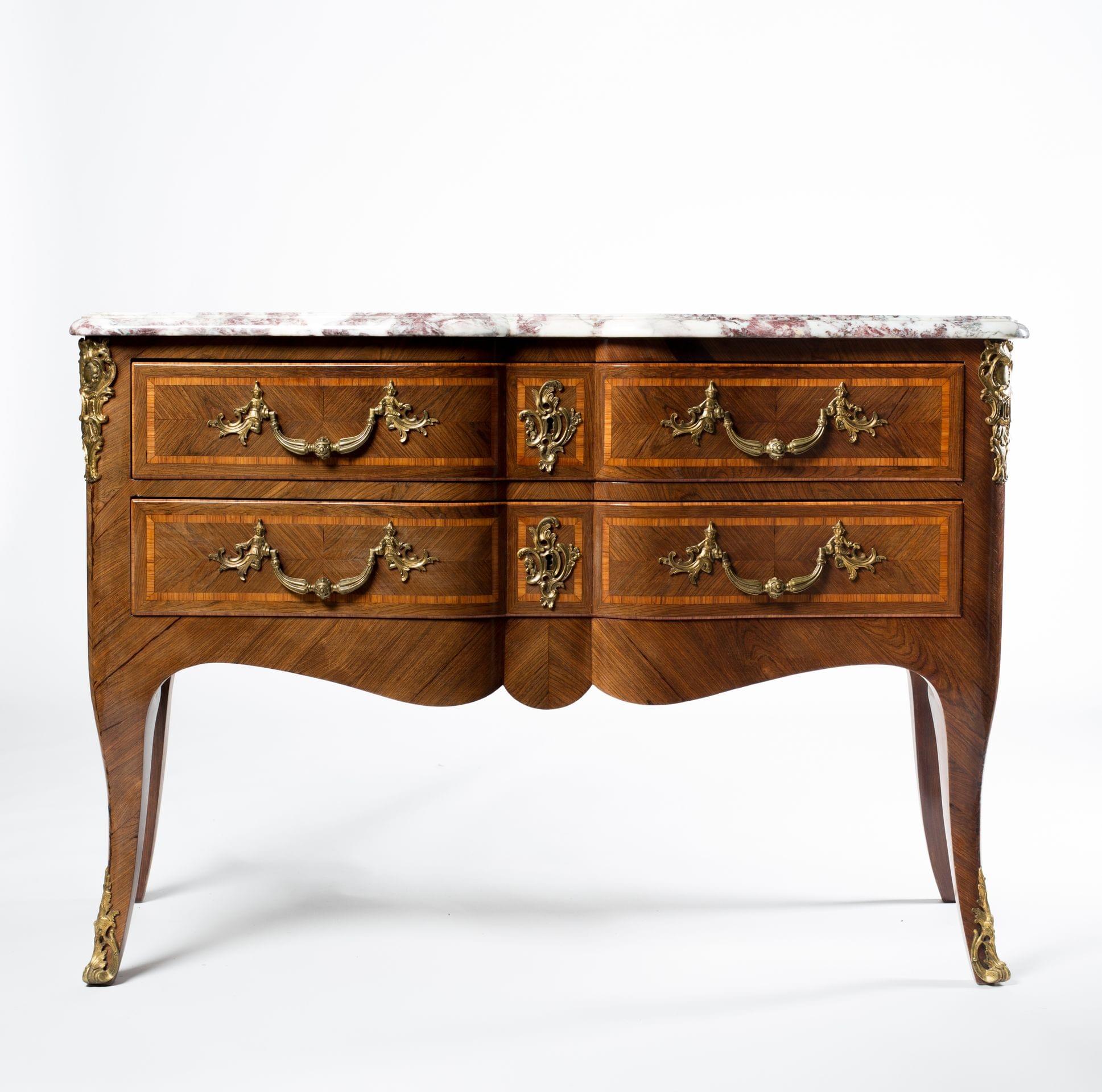 Deux tiroirs, bois de violette, bronze doré et marbre, 87x135x55 cm