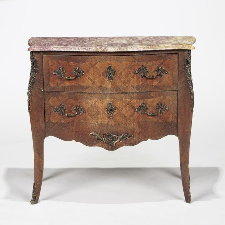 Deux tiroirs, bois de placage, bronze, 80x89x46 cm