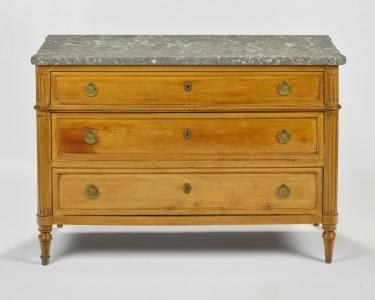 Deux tiroirs, bois de violette, bronze doré et marbre brèche bla...