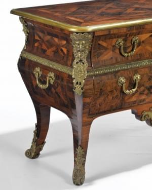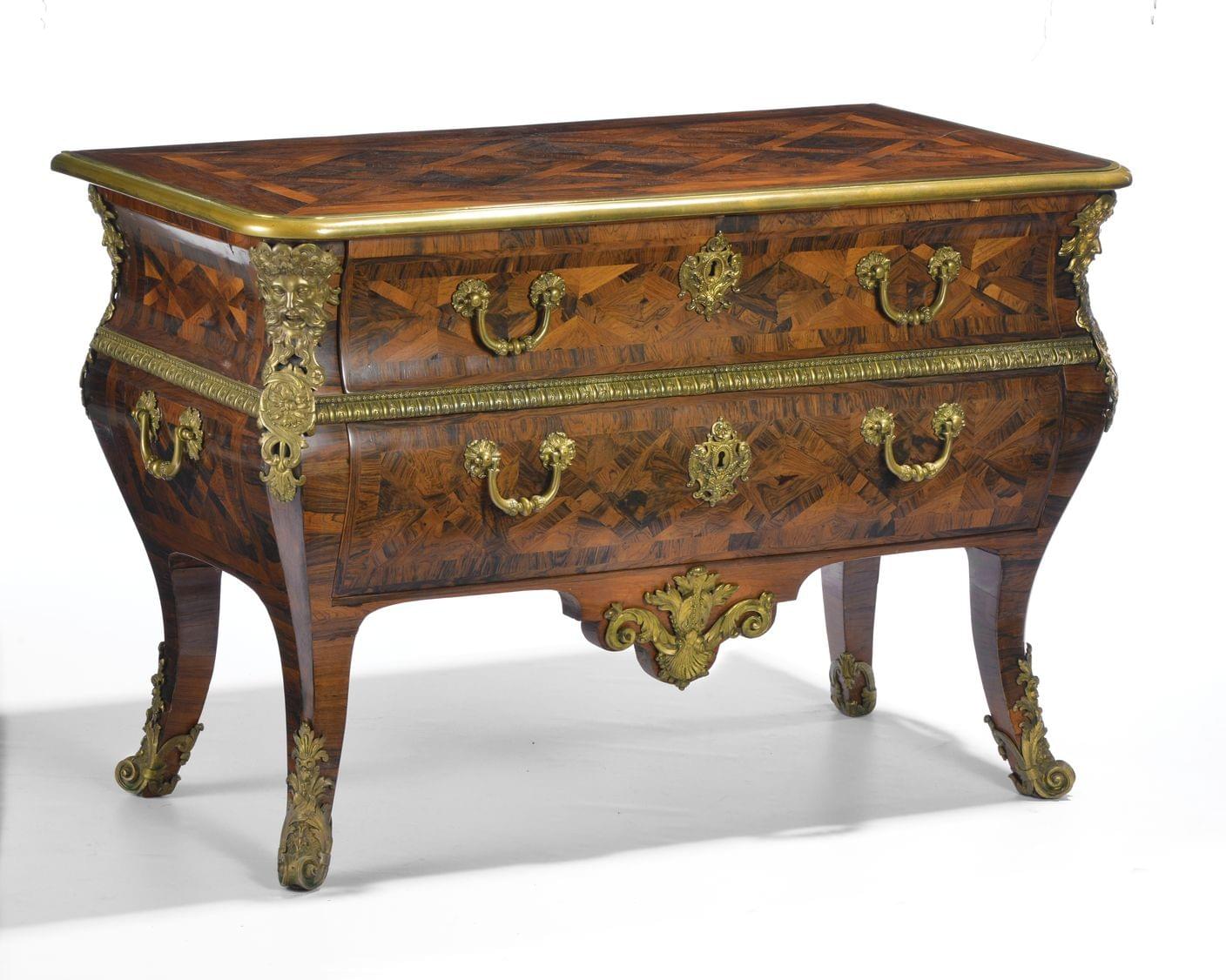 Poignées sur les côtés, bois de violette et bronze, circa 1710, 82x120x59 cm