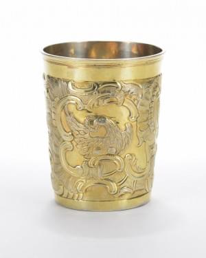 143. Grande timbale d'époque à décor d'aigles et rocailles